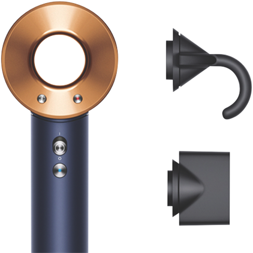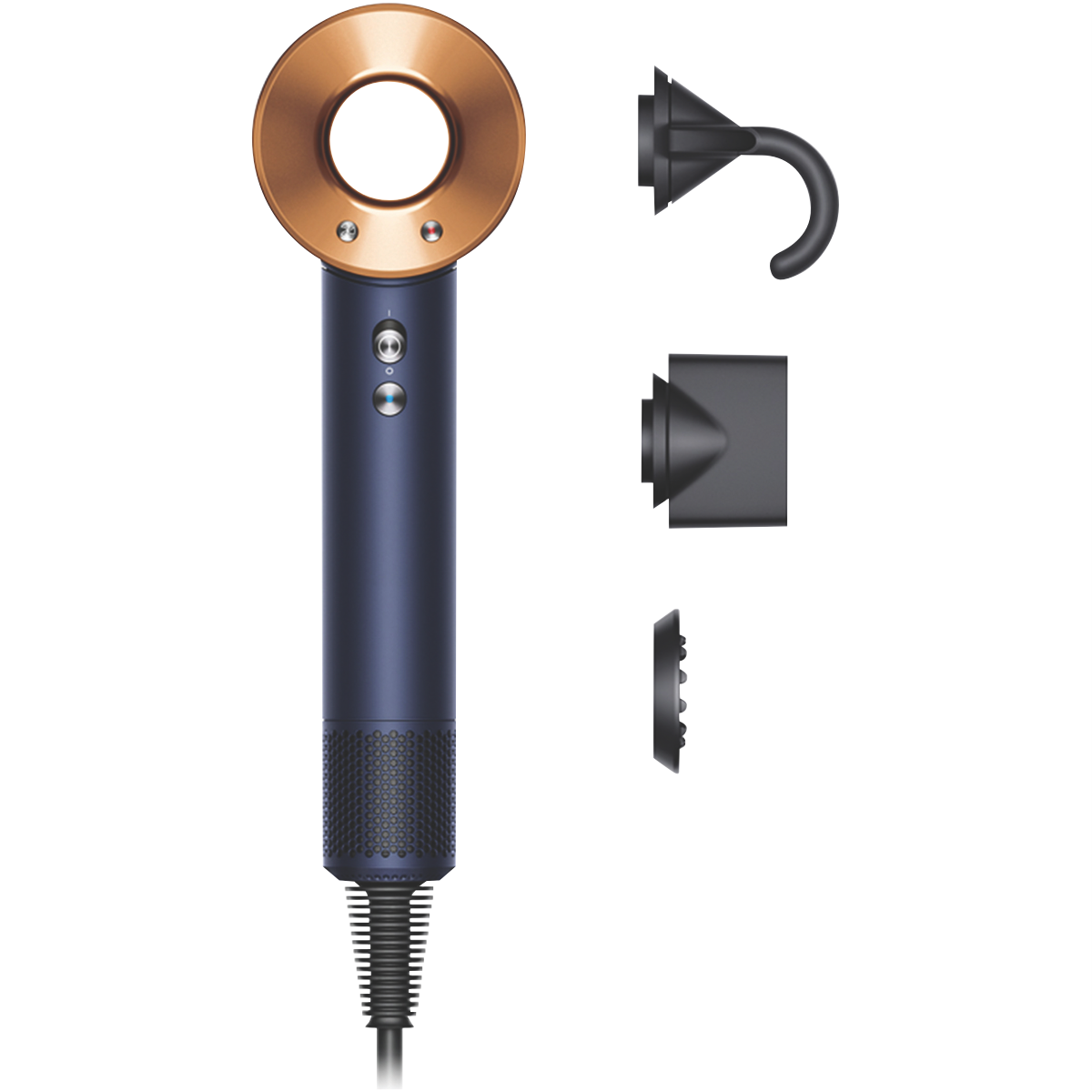 Style your hair quickly and gently with the Dyson Supersonic Hair Dryer in Prussian Blue. This smart dryer protects your hair's natural shine by measuring temperature over 40 times per second to prevent heat damage. The powerful digital motor spins at up to 110000rpm while Air Multiplie technology creates a controlled jet of air for fast drying and precise styling. Choose from 4 heat settings (including a cold shot) and 3 speed options to suit your hair type. It comes with three attachments - a styling concentrator gentle air attachment and flyaway attachment - perfect for straight and wavy hair. Backed by a 2 year warranty. Model number: 113297-01.