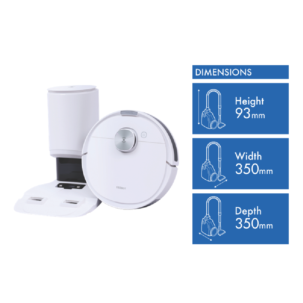 Additional Features OZMO Mopping system - 240mL electronically controlled water tank %2B consistent mop pressure , Intuitive ECOVACS HOME App, Multi-level Mapping, Unlimited Virtual Boundaries, Antibacterial Filter and Bag, 2.5L dustbag in auto empty station, up to 60 days of