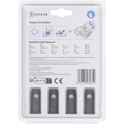Keep your Goat G1 Robot Mower running smoothly with this replacement Blade Kit in sleek black. Designed specifically for the Goat G1 family these blades ensure your automated helper maintains a perfectly manicured lawn without missing a beat. The kit comes packaged in a box measuring 275mm wide 380mm deep and 255mm high weighing 11kg for easy storage until needed. Compatible exclusively with the Goat G1 Robot Mower this essential maintenance accessory helps extend the life of your lawn care investment. Model GOAT-G1-BLADE-KIT.