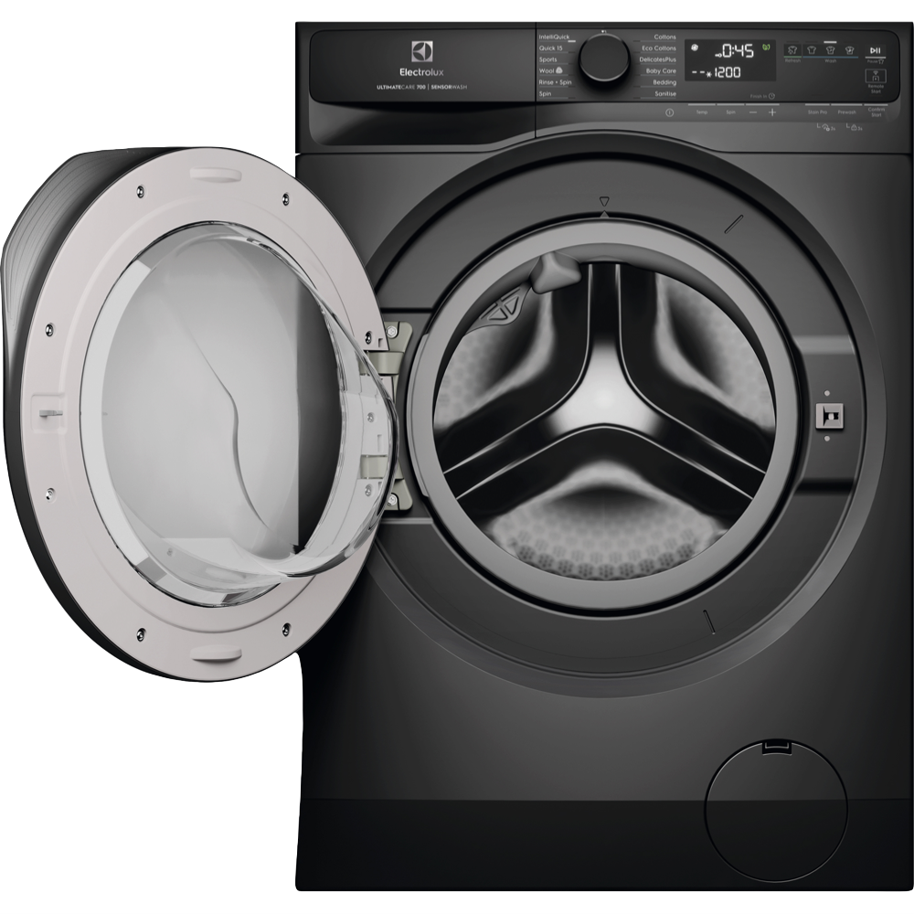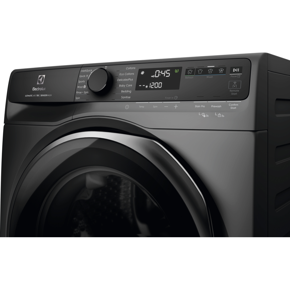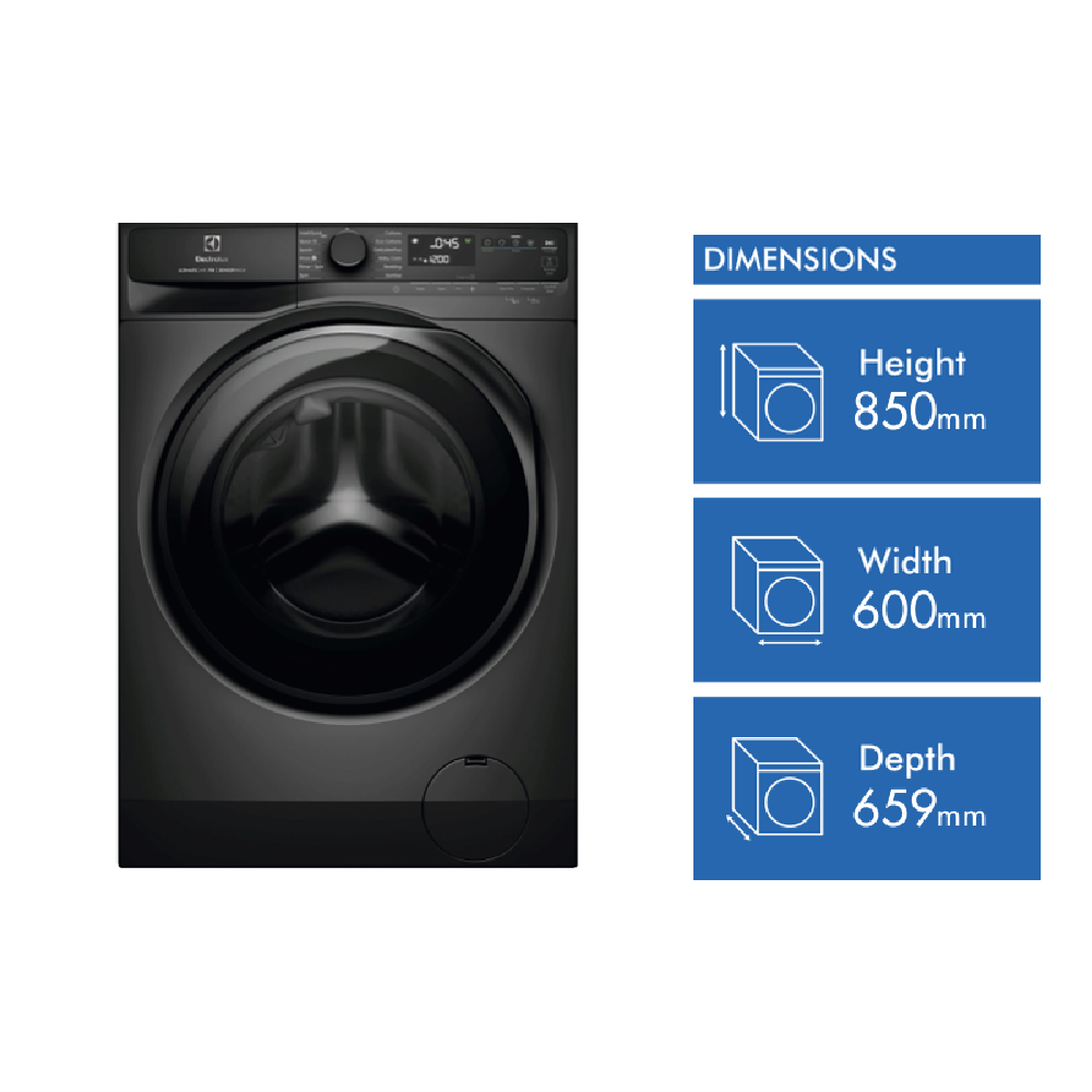 Ever wondered how much easier laundry could be with the right machine? This Electrolux UltimateCare 700 front load washer in Dark Onyx lets you tackle up to 10 kilograms of washing in one go making it perfect for busy households or those who want fewer loads. With 13 wash programs including bedding wool quick 15 and baby care you can easily choose the right setting for every fabric while extra options like prewash delay end and hygienic care help you customise each cycle. The electronic rotary and touch button controls feel intuitive so you can adjust temperatures or start and pause without fuss. Plus you ll save on energy and water thanks to its 5-star energy rating and 4.5-star water rating which means lower bills and less impact on the environment. Safety is covered with a two-step start system and child lock so you know your home stays secure. Measuring 850 millimetres high 600 wide and 659 deep it fits neatly into most laundry spaces. You ll get peace of mind with a 2-year manufacturer s warranty. Model EWF1043R7SCS. Ready to simplify your laundry routine?