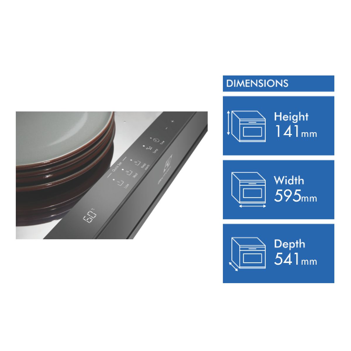 Additional Features Push to open draw, Soft close, Cups %26amp; Glass warming (40d %26#176;C), Plate Warming (60d %26#176;C), Fan air circulation, On/Off LED, Anti-slip mat, Adjustable temperature range 40-80%26#176;C,Operating indicator light ,Thermal cut out, Overheat protection