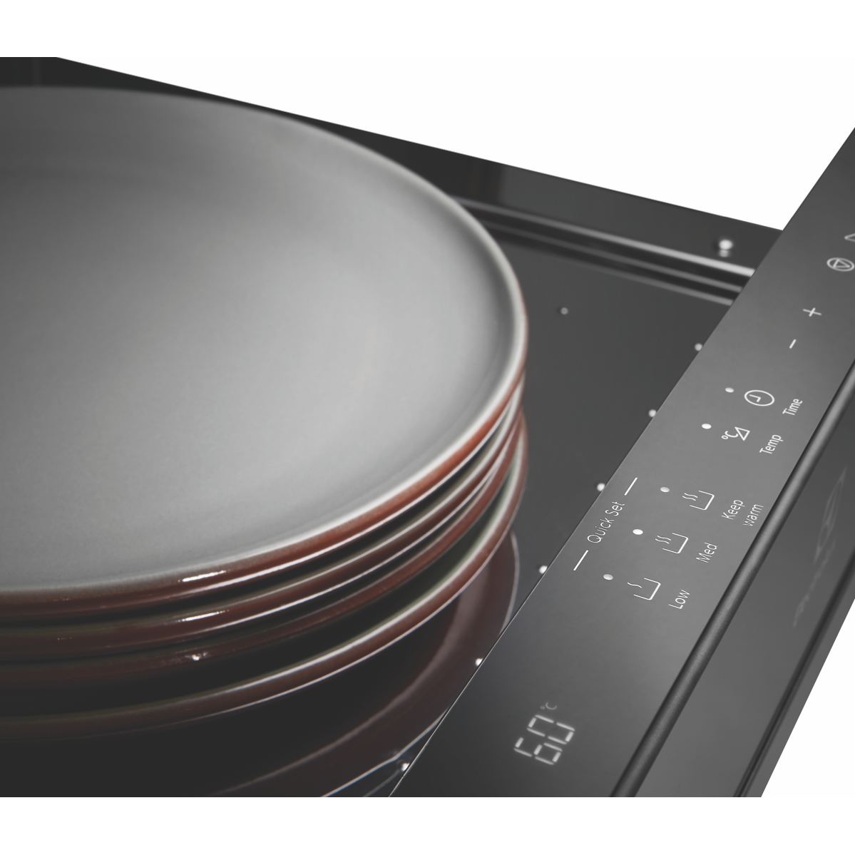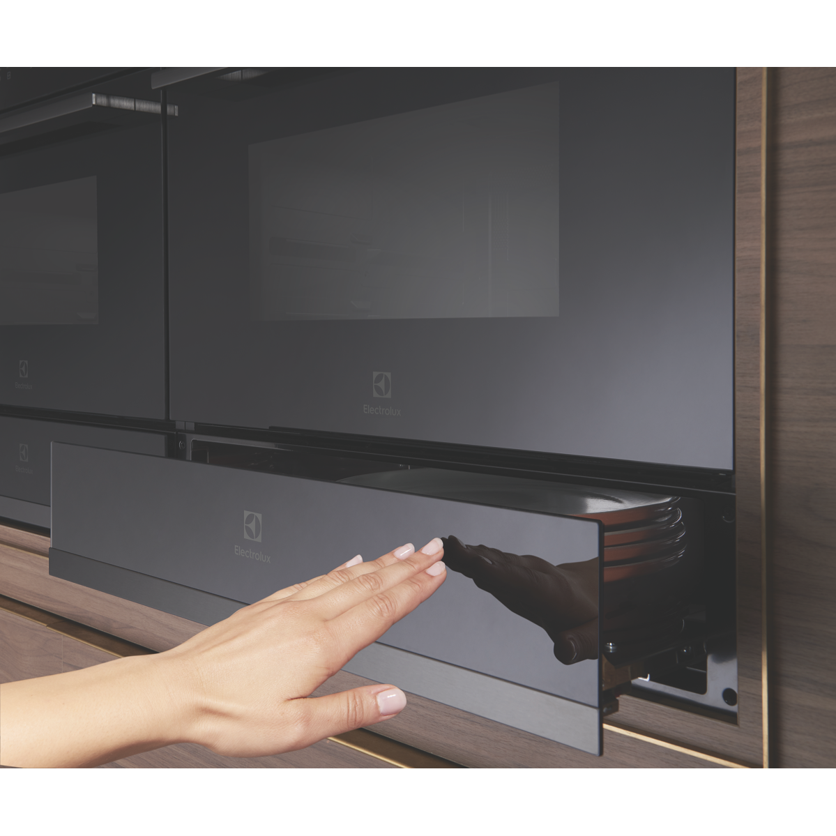Keep cooked food warm before it's ready to be served with this Electrolux 14cm Built-in Warming Drawer EWD1402DSE. With three Quick Set functions to choose from you can select 'Keep Warm' so cooked dinners stay warm 'Low' to get cups and glasses warmed-up on cooler days or 'Med' for toasty warm serving dishes and plates to help keep served food hotter for longer. Plus it has adjustable temperature options between 40 and 80 degrees Celsius so you can set the heat you want for each function. It has electronic touch controls and a push-to-open soft-closing drawer that can also be fully extended for ease of use when loading and unloading items from the warming drawer. It has a timer default operation of one hour however this can be easily altered at the 'Time' touch control. The maximum load bearing capacity of the drawer is 25 kg. Under the maximum load bearing capacity the drawer should be opened or closed carefully.