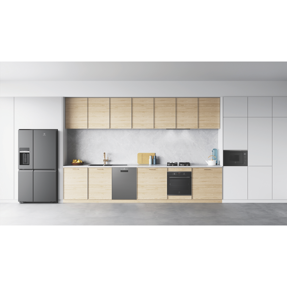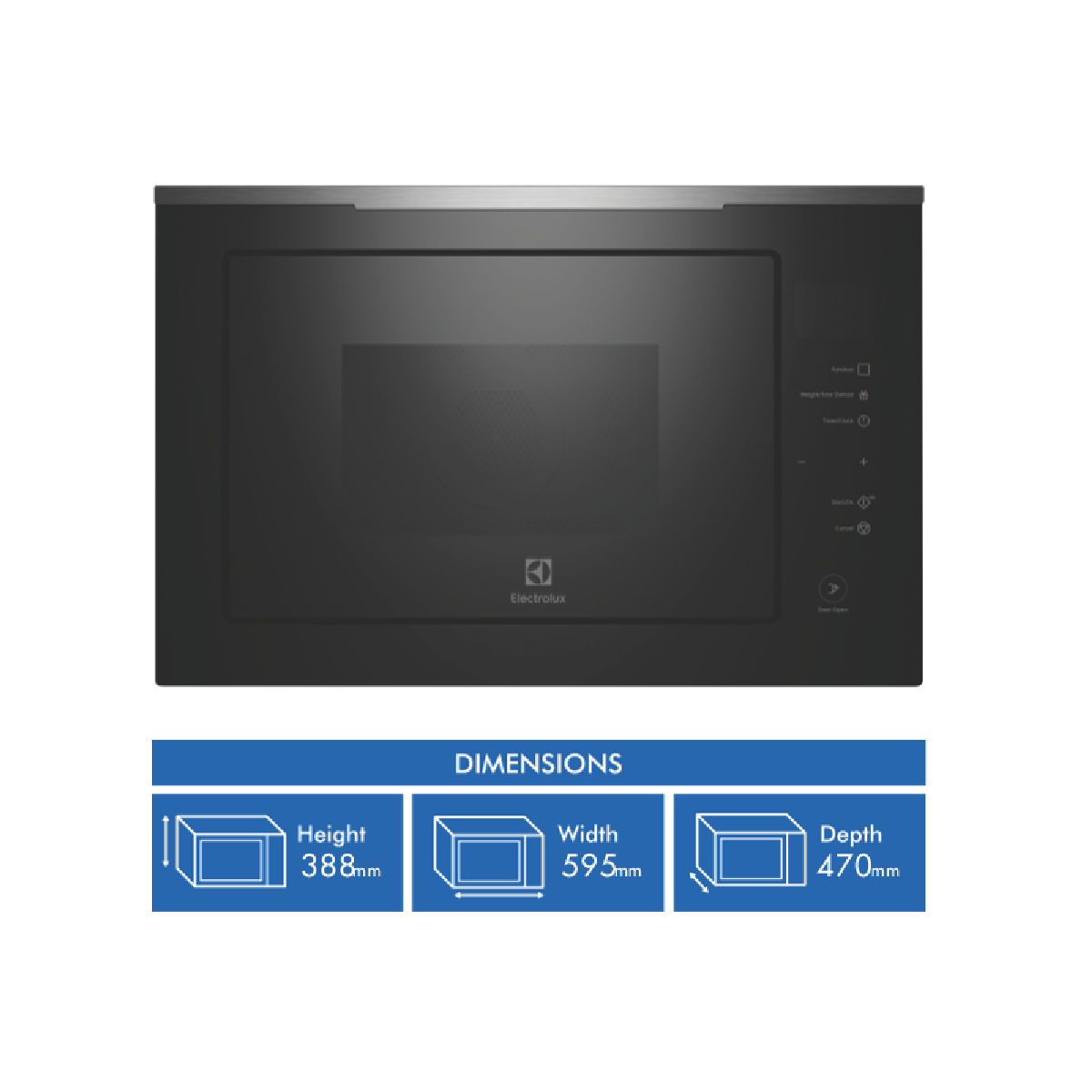 This dark stainless steel Electrolux 25 Litre Combination Microwave Oven EMB2529DSE offers incredible cooking flexibility while keeping your benchtop clutter-free with its built-in design. Select from Microwave Grill Convection - or a combination of all three to get deliciously cooked meals ordinarily reserved for the weekend now cooked perfectly from the inside out and in no time! With 10 auto cook programs such as Vegetable Meat or Pizza it's easy to see how this Electrolux combi microwave is a handy kitchen tool for all your reheating and cooking requirements. It has a seamless glass control panel that opens the microwave door with just one touch so that the microwave sits seamlessly within your kitchen cabinetry. From reheating defrosting grilling - to full-blown cooking - the Electrolux built-in combination microwave oven puts a whole new spin on weeknight dinners.
