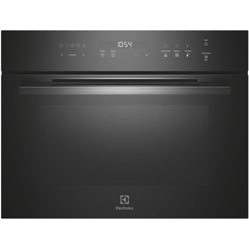 Looking for a way to simplify meal times while keeping your kitchen looking sharp? This 500 Series 44L Built-In Microwave Oven Combo in black fits seamlessly into your space and gives you plenty of room with its 44 litre capacity. Touch controls make it easy to switch between the fan forced microwave function nine cooking options and thirteen auto cook programs so you can heat defrost or bake without fuss. The LED screen keeps everything clear and the childproof lock means you don t have to worry when kids are around. You ll appreciate the fully programmable timer and five power levels helping you adjust settings to suit whatever you re preparing. Dimensions are 458mm high 595mm wide and 568mm deep with a three-year manufacturer s warranty for peace of mind. Model EVEM6546DF. Try it out and see how much easier cooking can be!