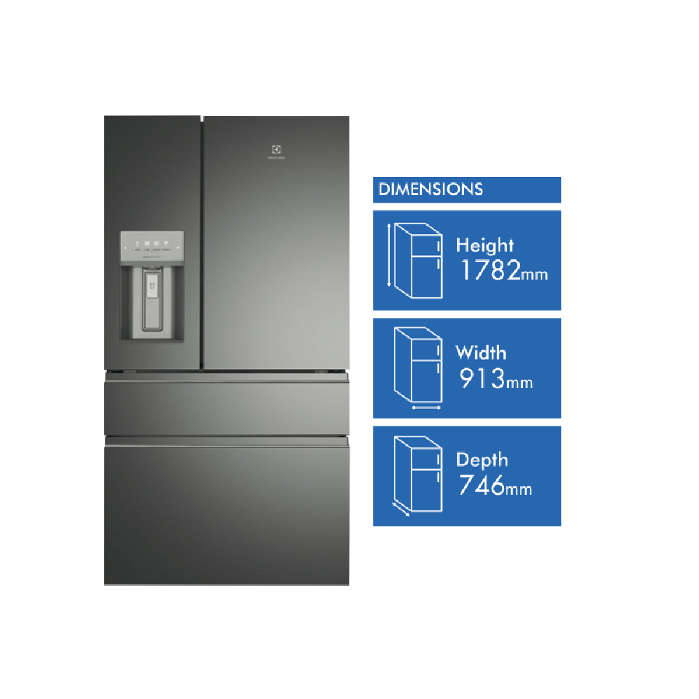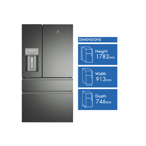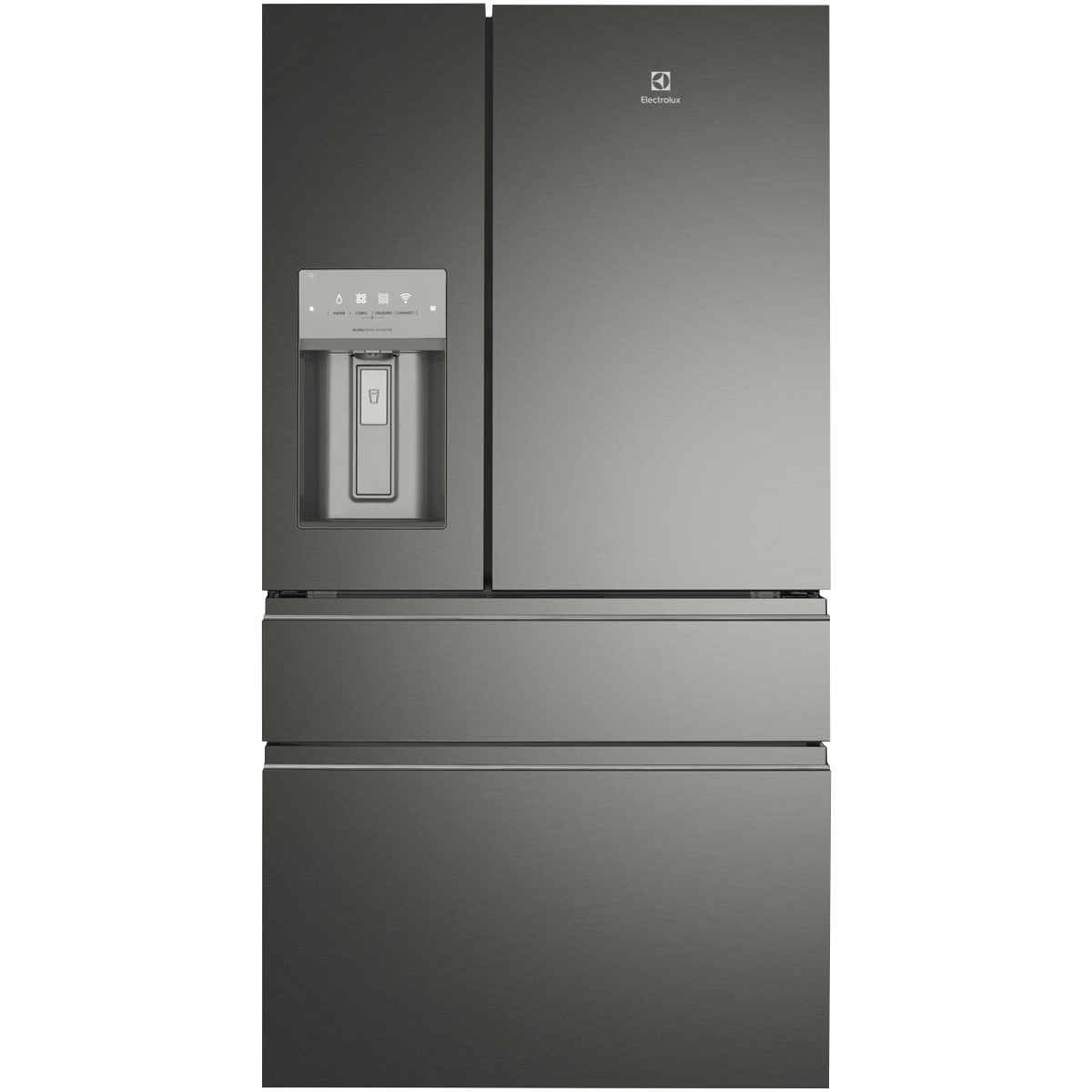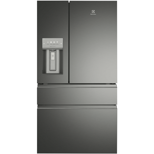 Inspire the culinary artist in you with this sleek French Door refrigerator from Electrolux. This EHE6899BA model comes in a dramatic dark stainless steel finish that will complement any modern kitchen design. With a generous 609L capacity you'll have plenty of room to store fresh ingredients and leftovers. The spacious 371L fridge section features flexible shelving and slide-back doors making it easy to store large platters and trays. The separate 165L freezer includes two freezer drawers with dividers for organizing frozen foods. SmartSplit doors give you the flexibility to open just one side when you need a quick snack. The FlexFresh fully convertible drawer creates the perfect climate for keeping fruits and veggies fresh. Additional conveniences like the ice and water dispenser TasteLock crispers and flip-up shelving make this the ultimate refrigerator for the discerning home chef. With its sleek style spacious storage and innovative features this Electrolux French door refrigerator simplifies meal prep while adding a touch of elegance to your kitchen. The manufacturer's part number for this product is EHE6899BA. Step up your culinary game with this exceptional fridge.