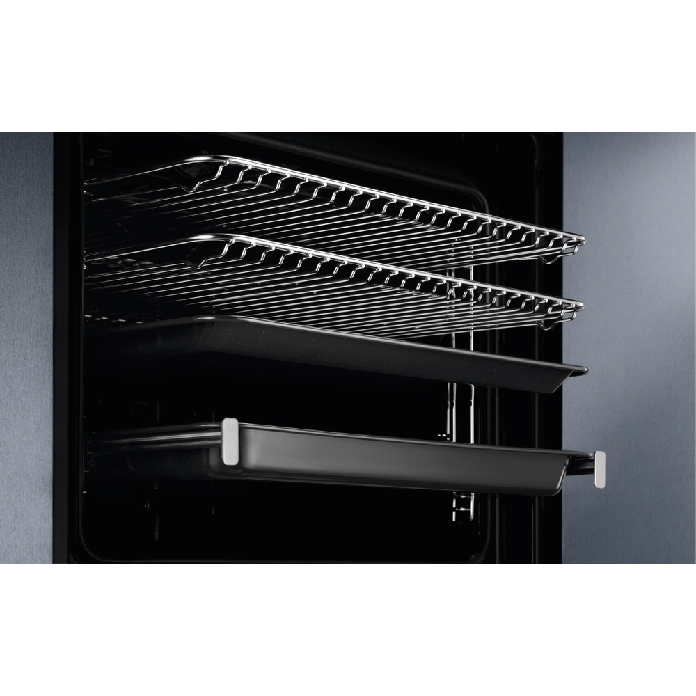 Looking for an oven that makes cooking easier and more enjoyable? This 800 Series 60cm Built-In Steam Oven in sleek black lets you prepare everything from roasts to bread using its full steam and food probe features for tasty results every time. With a generous 77 litre capacity and 24 cooking functions you can grill bake keep dishes warm or even prove dough so you ll always have the right setting for your favourite recipes. The CookSmart Touch TFT controls make it simple to select options while the child button lock and triple glazed door add peace of mind for busy households. You ll find handy extras like steam cleaning soft close removable inner glass panels and telescopic runners plus a smart food probe to help you nail every meal. Five shelf levels and a range of included accessories mean you can cook for a crowd or just for yourself. Dimensions are 594mm high 595mm wide and 567mm deep with a box weight of 39kg. Enjoy added confidence with a three-year manufacturer s warranty. Model EVES6810BF. Discover how this oven can improve your kitchen routine.