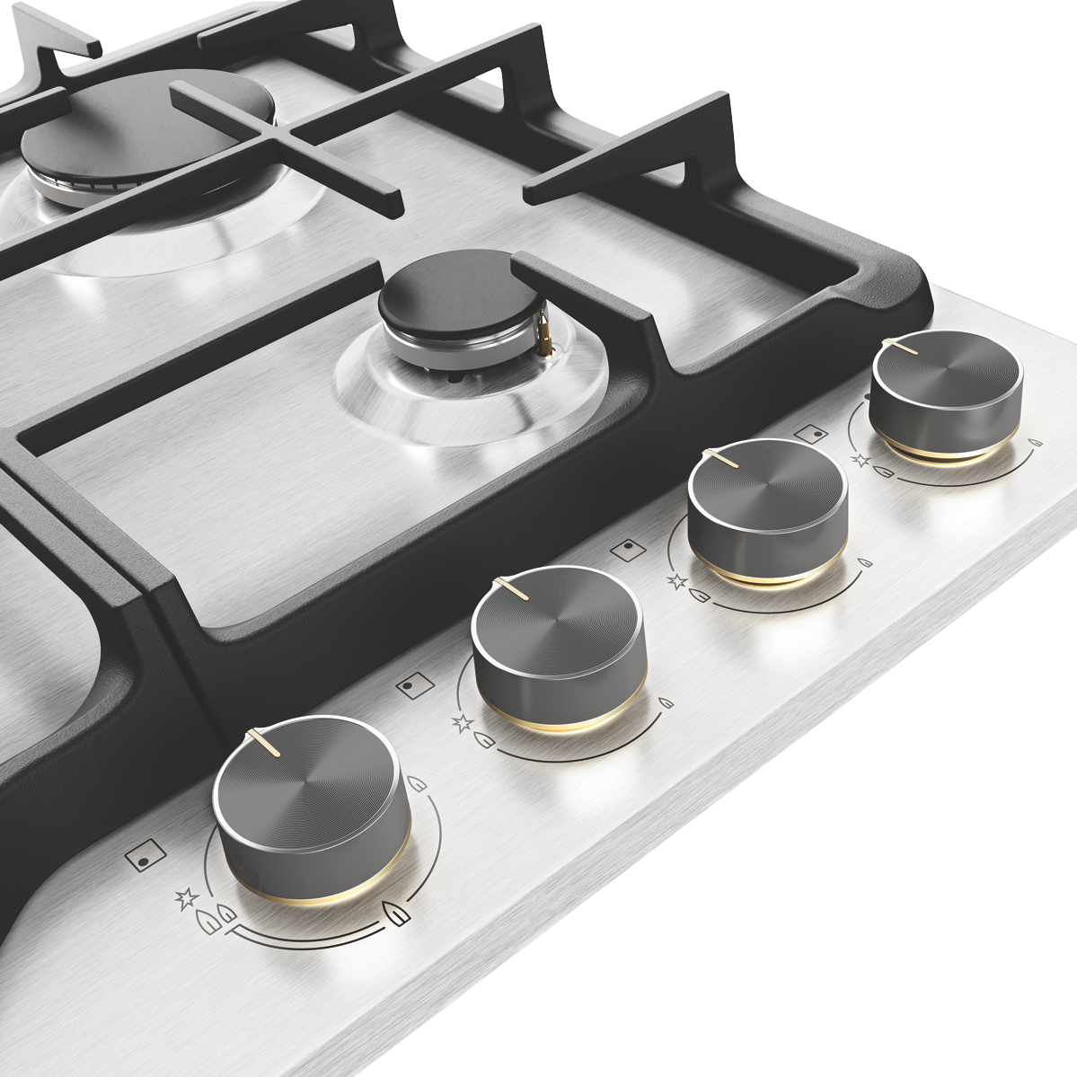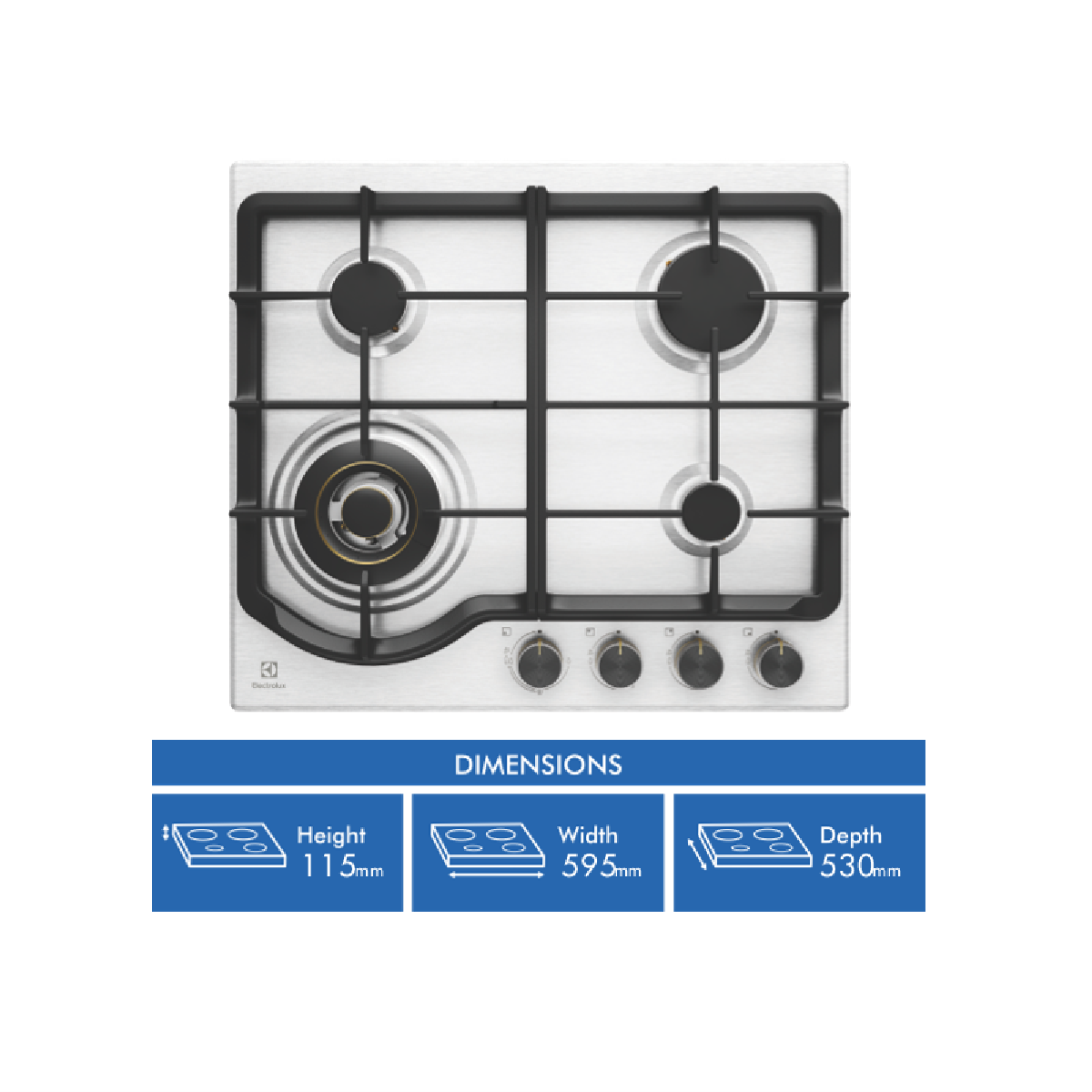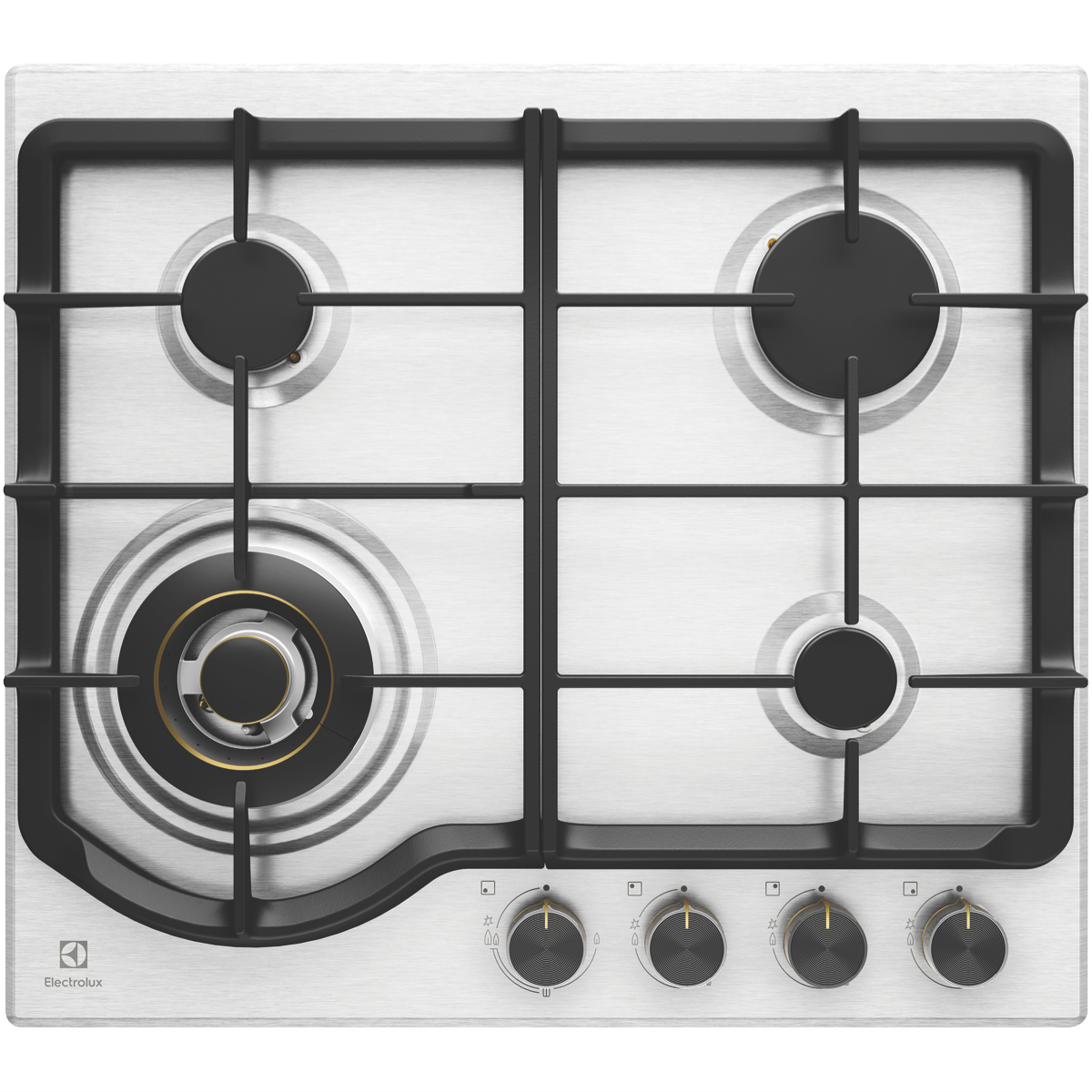 This Electrolux 60cm Gas Cooktop EHG645SE in stainless steel has four burners for all your cooking needs - from fast boiling or stir-frying on the wok burner - to slow cooking simmering or general light frying on the other burners. Plus the wok burner features dual flame control so you can effortlessly go from high flame to a gentle simmer or vice versa. This Electrolux cooktop has sturdy cast trivets for stability a laser etched control panel for longevity and metallised control knobs to complement the quality feel and finish of this gas cooktop's modern stainless steel design.