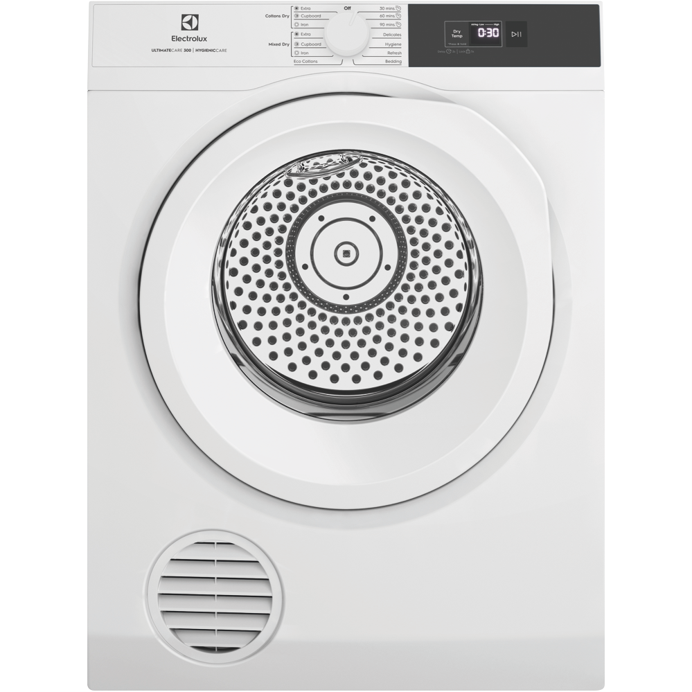 Want to simplify your laundry routine? This Electrolux 7kg Vented Dryer makes drying clothes a breeze. It's got 10 different programs to handle all your laundry needs from delicates to bedding. The SensorDry tech figures out when your clothes are dry so you don't have to guess. Plus it's got a hygiene cycle to keep things extra clean. You can even delay the start time or add extra anti-crease if you're not ready to fold right away. With low medium and high temp settings it'll take good care of all your fabrics. And if you're short on space you can mount it on the wall. It's 600mm wide 795mm tall and 600mm deep fitting nicely in most laundry rooms. Electrolux backs it with a 2-year warranty so you can dry with confidence. The model number is EDV705H3WC.