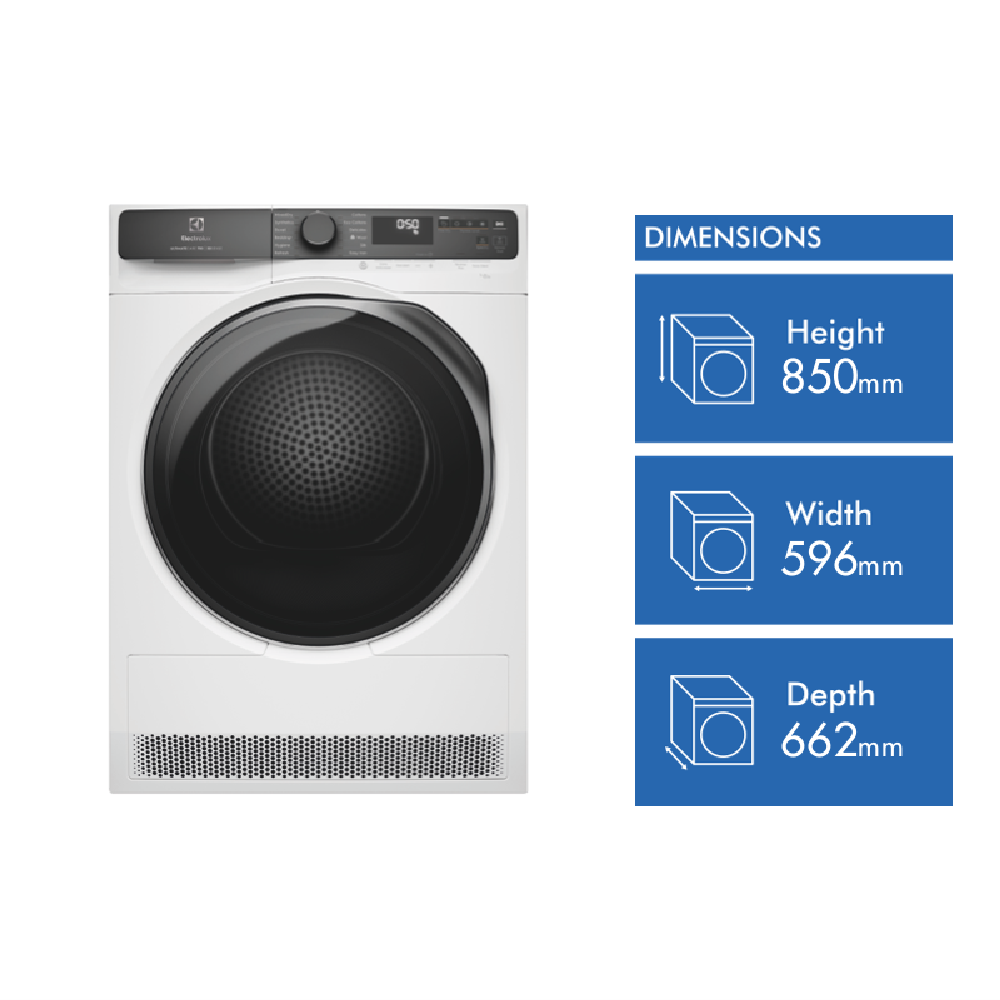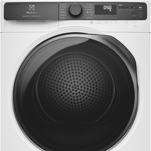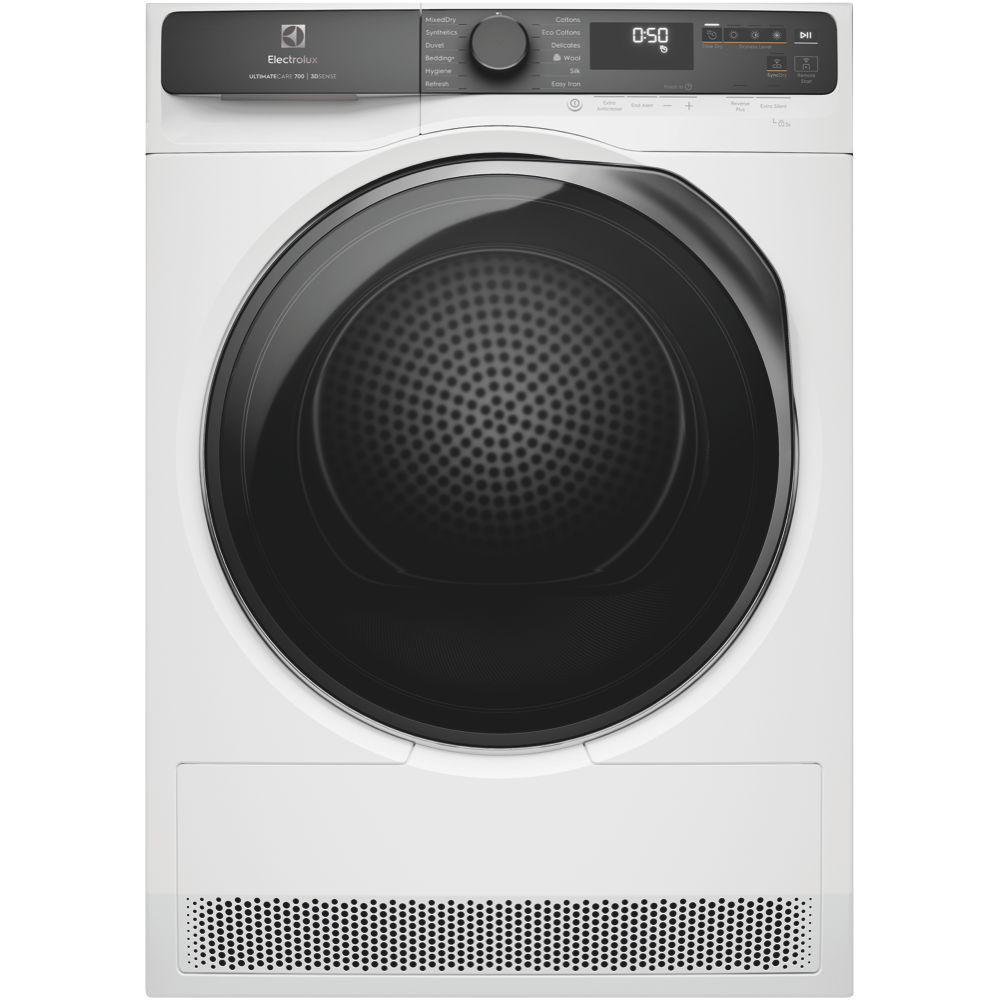8kg UltimateCare 700 heat pump dryer with 9 star energy efficiency. Wi-Fi enabled featuring Woolmark Blue certification advanced 3DSense technology refresh cycle and reverse tumbling action