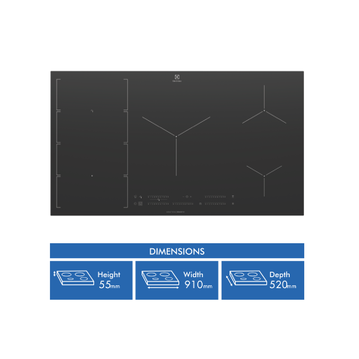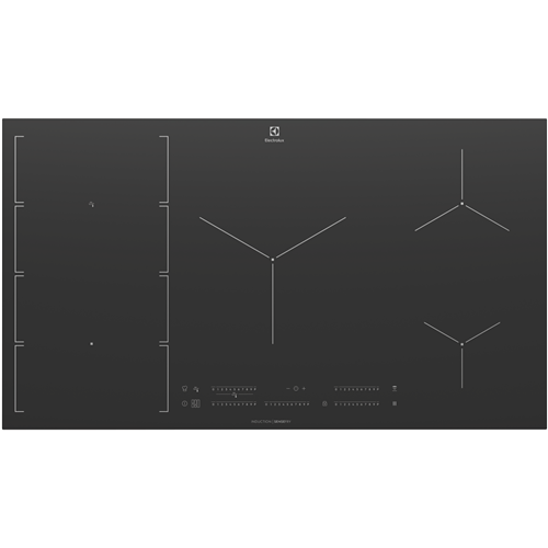 Cooking freedom is yours with this seven-zone Electrolux 90cm Induction Cooktop EHI977BE making it possible to create multiple dishes quickly and efficiently by specifically heating only the base of your induction-friendly cookware for quicker results. FlexiBridge allows you to merge all of the cooking zones on the left into one large cooking surface while the x-large MaxiZone delivers a consistent heat so you can cook foods like paella just like a pro using a large paella pan. This Electrolux cooktop even has SenseFry to measure the heat and make automatic adjustments under the pan to maintain the ideal temperature for even cooking. Intuitive touch controls keep up with your every demand by instantly lowering or increasing the heat intensity with every touch of the power controls. Plus each zone has PowerBoost for intense heat in an instant so you'll no longer waste time waiting for water to boil or your pan to heat up. Safety features include residual heat indicators and a child lock. It also has Hob2Hood technology meaning your compatible Electrolux rangehood can automatically switch on when you start cooking also adjusting the fan speed according to the cooking intensity on the cooktop below.