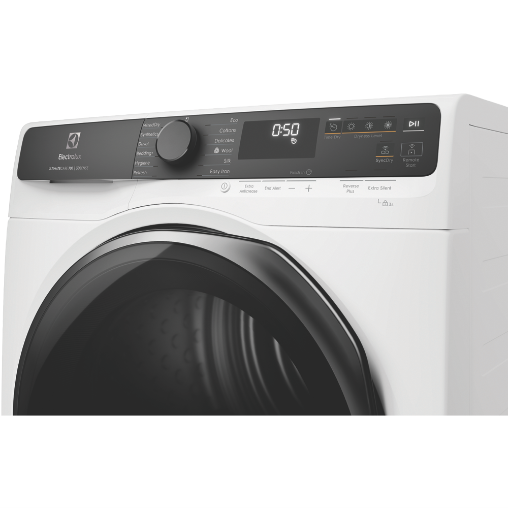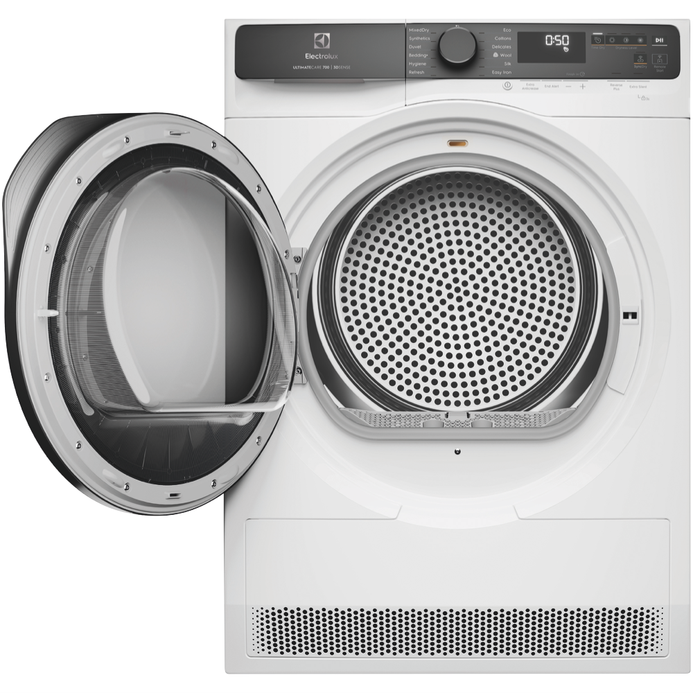 9kg UltimateCare 700 heat pump dryer with 9 star energy efficiency. Wi-Fi enable featuring Woolmark Blue certification advanced 3DSense technology refresh cycle and reverse tumbling action