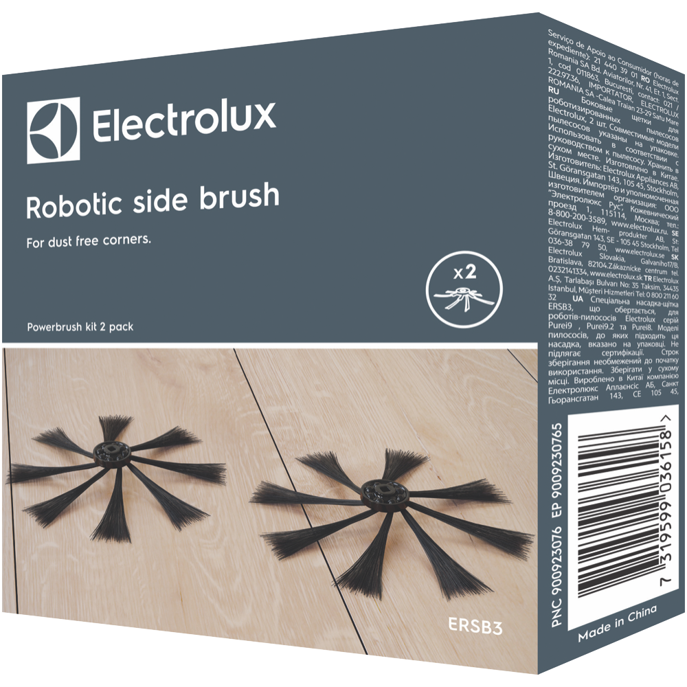 These Electrolux PURE i9 Powerbrush attachments give your robot vacuum an extra boost. The two-pack includes specialized brushes that help pick up more dirt and debris as your vacuum moves around. They're designed to work with Electrolux PURE i9 models making it easy to keep your floors clean. Just pop them on and let your robot do the work. With a one-year warranty you can feel good about this handy upgrade for your cleaning helper. The manufacturer's part number is ERSB3.