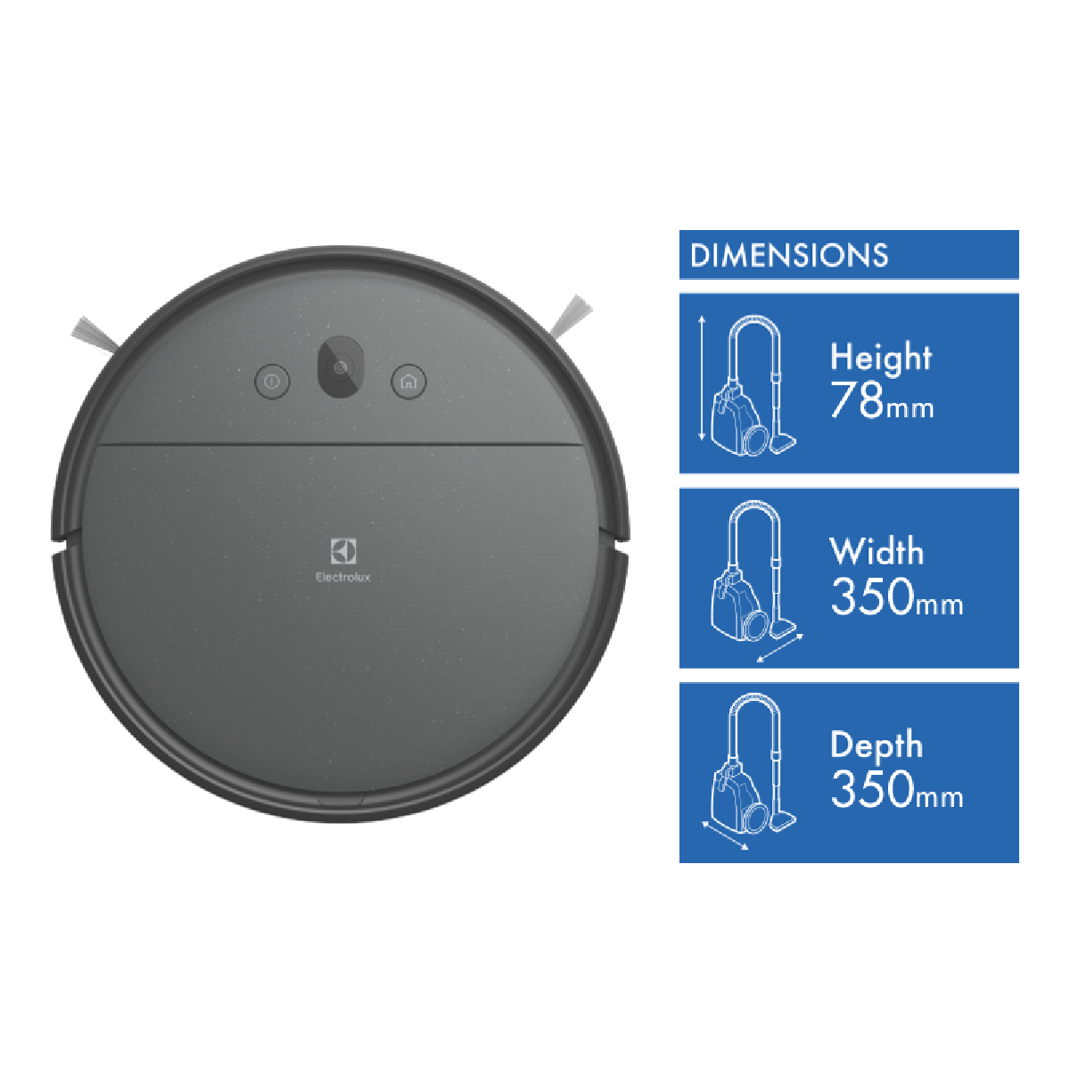 Upgrade your home cleaning routine with the Electrolux UltimateHome 300 Robotic Vacuum + Mop & Camera designed to make your life easier and your home cleaner than ever before. With voice activation via Google Home you can now control your vacuum effortlessly with just the sound of your voice. Whether you're out running errands or enjoying a day out return to a beautifully cleaned home and let the stress melt away. Featuring an impressive runtime of up to 120 minutes on a single charge(1) this powerhouse will tackle every nook and cranny of your living space.Experience the joy of having sparkling clean floors without the hassle of separate cleaning tools. With its innovative 2-in-1 vacuum and mop functionality this robotic wonder saves you both time and effort. Effortlessly transition between vacuuming and mopping modes adjusting water levels for the desired level of cleanliness via the remote control or mobile app. Take full control of your cleaning routine with the touch of a button on your smartphone. Our customisable scheduling system allows you to program the vacuum to start cleaning or mopping at your preferred date time and even specific functions. Whether you want it to focus on high-traffic areas or tackle the whole house our flexible scheduling system lets you relax and enjoy the pleasure of coming home to a spotless living environment.Disclaimers: (1)of use on minimum mode which equals to a calculated surface area of up to 85 square metres.