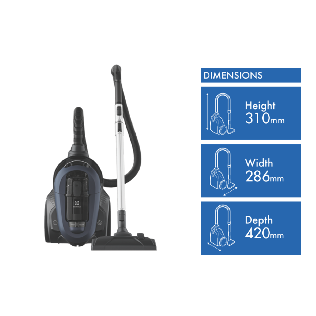 Vacuuming has never been easier with the Electrolux Ultimate Home 700 Bagless Vacuum. This barrel vacuum features a powerful 1800 watt motor to effortlessly pick up dirt and debris from carpets and hard floors. The generous 1.6 litre dust capacity means more cleaning and less emptying. Reach up to 12 metres for convenient whole home cleaning. Weighing only 5.42kg the Ultimate Home 700 is lightweight and manoeuvrable. At 286 x 310 x 420mm it fits neatly into small spaces for storage. The combination nozzle tackles any mess on any surface. Backed by a 2 year manufacturer's warranty for peace of mind. Give your floors a thorough clean with the Electrolux Ultimate Home 700. The manufacturer's part number for this product is EFC71511DB.