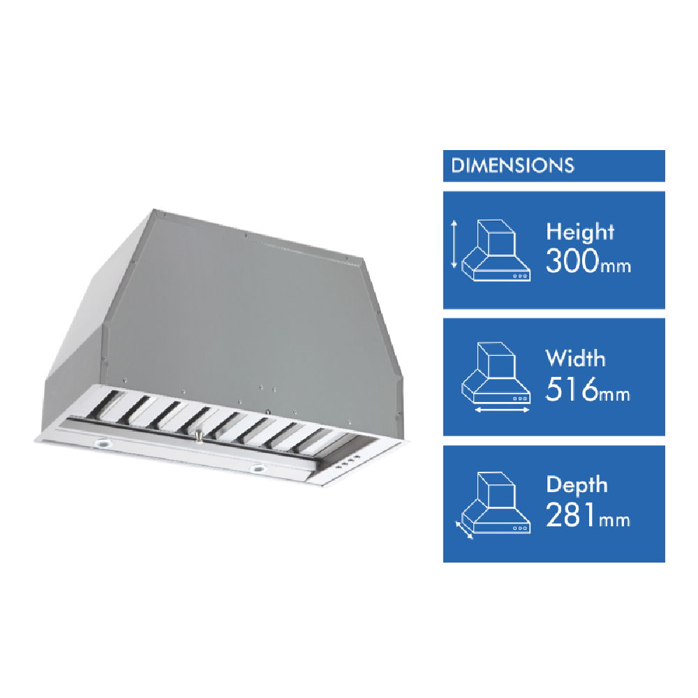 Transform your kitchen with the stylish Emilia 52cm stainless steel rangehood. This sleek fixed rangehood features a contemporary stainless steel finish that will complement any modern decor. With a powerful 800 cubic meter per hour extraction capacity this rangehood effectively removes steam grease and cooking odors. The integrated 2 x LED lights provide optimal illumination over your cooktop while the 3 fan speeds allow you to adjust airflow to suit your cooking. At a low 58dB this rangehood operates quietly so you can cook and chat with ease. With a compact 52cm width 300mm height and 281mm depth the Emilia rangehood mounts above your cooktop to keep your kitchen fresh and clean. The electronic push button controls and stainless steel baffle filters make operation simple and hassle-free. Durable and easy to maintain this rangehood will keep your kitchen free of unwanted cooking fumes for years to come.Bring style power and convenience to your kitchen with the Emilia 52cm stainless steel rangehood. The manufacturer's part number for this product is CK52UCF. Learn more about how this rangehood can enhance your cooking experience today.