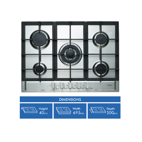 Emilia 70cm 5 Burner Gas Cooktop Stainless Steel