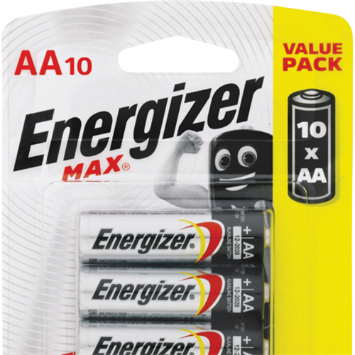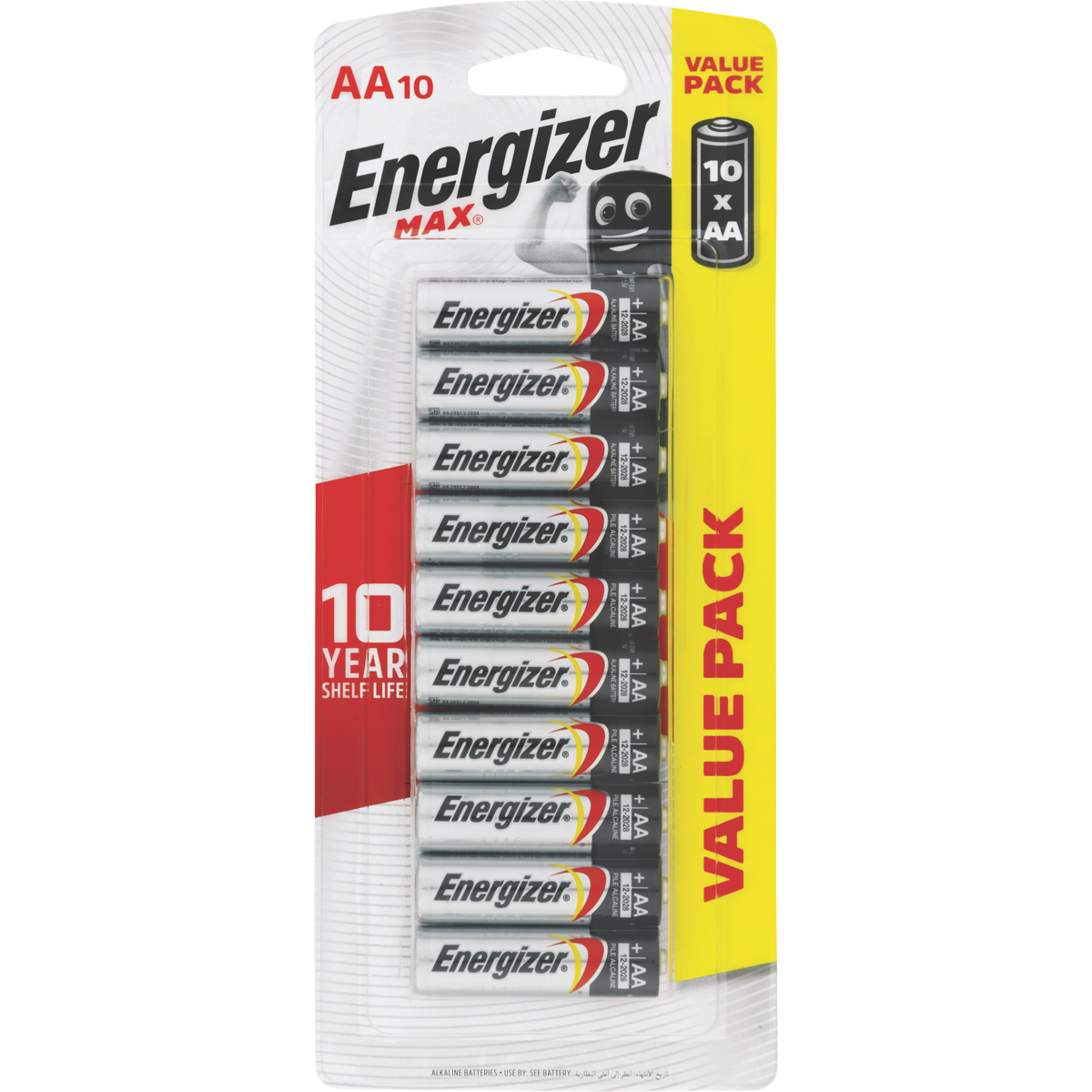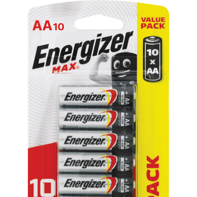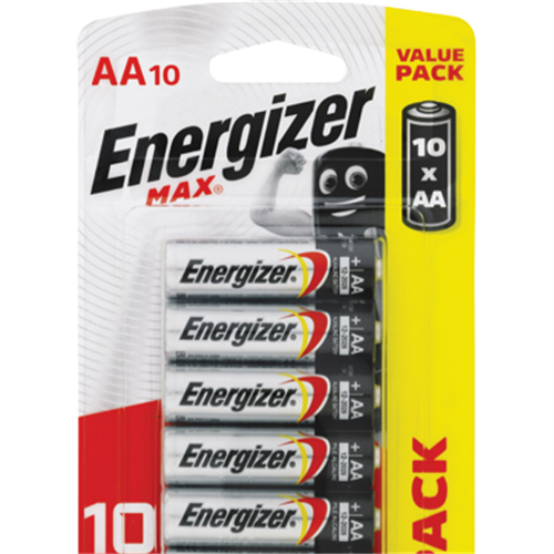 Power your devices with long-lasting energy using the Energizer Max AA Batteries 10 Pack. These high-performance AA batteries provide reliable power for everything from remotes and toys to flashlights and digital cameras. The Energizer Max name says it all - expect maximum battery life from this pack of 10 AA batteries. Made with leak-resistant construction these alkaline batteries deliver power when you need it most. The AA size fits many household electronics and the 10 pack ensures you've got spares on hand for uninterrupted performance. With a 10 year shelf life Energizer Max batteries retain charge while sitting in storage. Their cylindrical design and corrosion-free composition allow for safe drop-free use. For household and personal electronics that require AA batteries choose the trusted Energizer brand for max battery life. The manufacturer's part number for this product is E000029100. Get your Energizer Max AA Batteries 10 Pack today for long-lasting AA battery power.