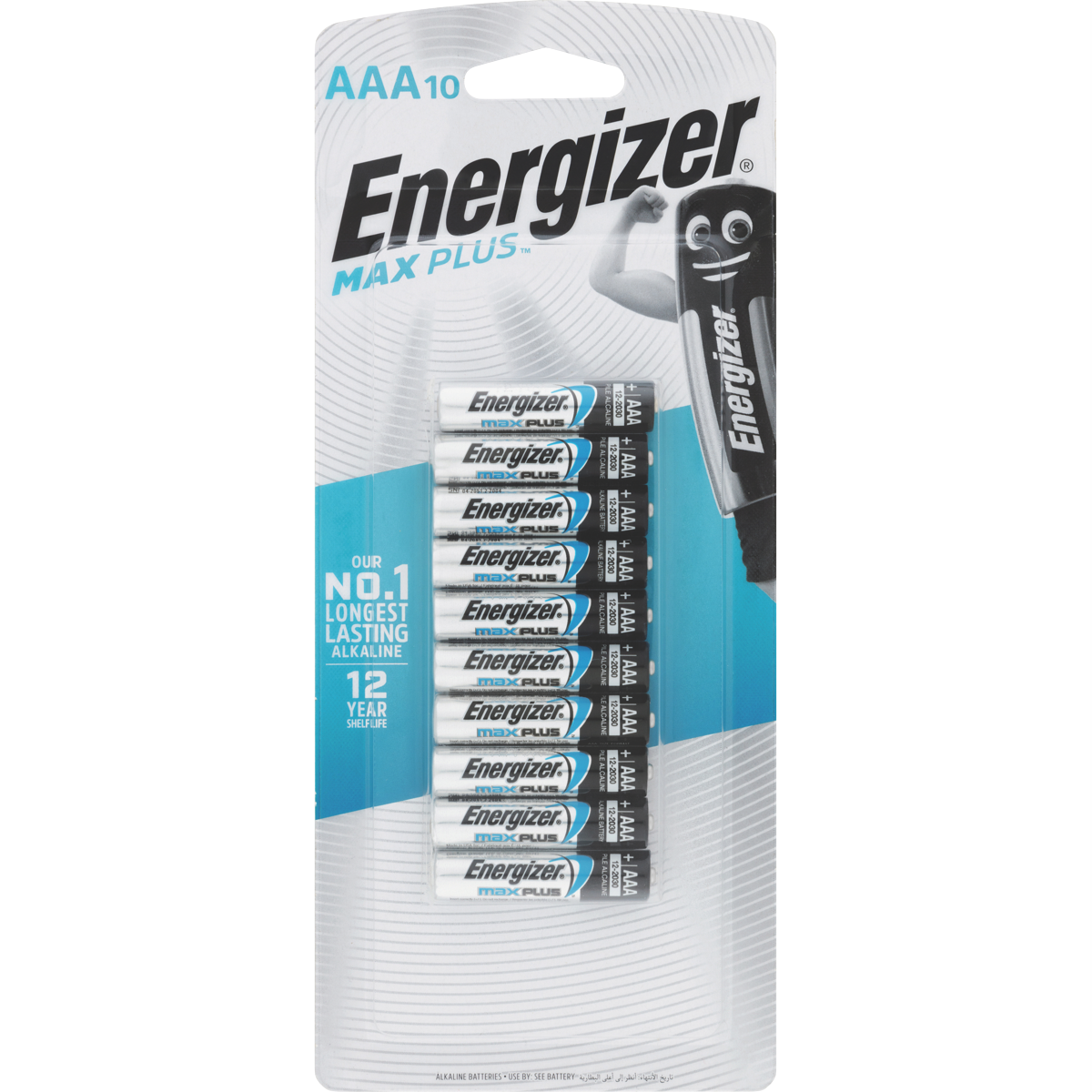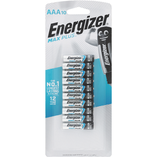 Power up your devices with the long-lasting energy of Energizer Max Plus AAA Batteries. This 10 pack of high-performance alkaline batteries provides reliable power for everything from remotes and toys to flashlights and more. At 42mm tall and 10mm wide these compact AAA batteries fit nicely into any device that needs replacements. Their non-rechargeable leak-resistant construction allows you to simply swap in a fresh battery when power runs low. With Energizer's advanced engineering you can count on up to 10 years of shelf life and hours upon hours of uninterrupted device use. The Max Plus batteries work overtime so you don't have to keeping the fun and functionality going strong. For seamless swapping and endless energy reach for the trusted performance of Energizer. The manufacturer's part number for this product is E301398600. Invest in long-lasting power today.