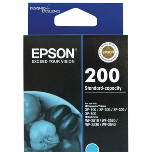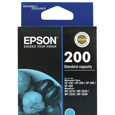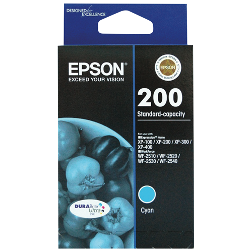 Make printing vivid colour documents and photos a breeze with the Epson 200 DURABrite Cyan Ink Cartridge. This cyan ink cartridge is designed for Epson XP and WorkForce printers providing up to 500 pages of rich smudge-resistant prints. The DURABrite ink formula produces laser-quality text and ensures that your colour prints remain water and fade resistant for decades to come. With its specially engineered ink this cartridge delivers crisp sharp text and graphics. The cyan ink produces bright vivid colours on plain and photo paper. Designed for high productivity this cartridge enables borderless printing of 4R photos in as fast as 10 seconds. The Epson DURABrite ink is specially formulated to work flawlessly with your Epson printer to deliver outstanding results print after print. For stunning photos and professional documents that will retain their colour for generations choose the Epson 200 DURABrite Cyan Ink Cartridge. The manufacturer's part number for this product is T200292.
