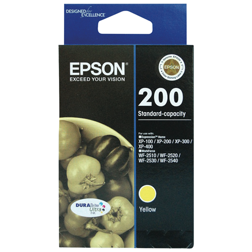 Step into a world of vibrant long lasting prints with the Epson 200 DURABrite Yellow Ink Cartridge. This cartridge delivers outstanding quality and reliability for all your printing needs. The DURABrite ink produces laser-sharp text and graphics that resist fading and smudging even when exposed to water highlighters or light. Print up to 500 pages with rich bright yellows that make graphics pop right off the page. Designed for seamless compatibility with Epson XP-100 XP-200 XP-300 XP-310 XP-400 XP-410 Workforce WF-2510 WF-2520 WF-2530 and WF-2540 printers this cartridge makes printing easy and efficient. Say goodbye to cartridge swapping and wasted time with individual inks that deliver a higher page yield. The DURABrite ink is specially formulated to deliver crisp vibrant results on all paper types. Bring your prints to life with the bright sunny yellows from the Epson 200 DURABrite. Make your world more colourful today. The manufacturer's part number for this product is T200492. Check out this cartridge to enhance your printing experience with rich long lasting colour.