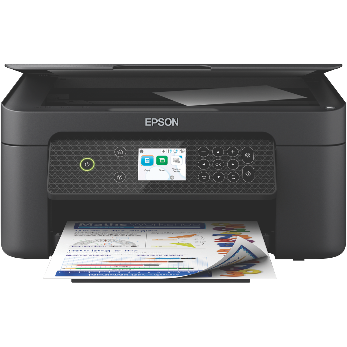 Add efficiency to your daily routine with the Epson Expression Home Compact 3-in-1 Printer XP-4200. This versatile inkjet printer delivers lab-quality photos and laser-sharp text while taking up minimal space. With built-in wireless connectivity you can print from smartphones and tablets with ease. It produces crisp black text at speeds up to 10.3ppm and vivid color graphics at 5.8ppm. The high 5760 x 1440dpi resolution ensures professional quality output. Scan and copy multipage documents at a swift 1200 x 2400dpi. The 2.4 LCD screen allows intuitive control over print jobs. Conveniently print on the go using AirPrint Google Cloud Print or the Epson Smart Panel app. Reduce waste with automatic double-sided printing. The 100-sheet tray capacity and compact 375mm x 300mm footprint help it fit neatly into any home office or dorm room. Add an extra creative touch with customizable CD/DVD printing. Reliable and affordable the XP-4200 helps streamline both work and play. The manufacturer's part number for this product is XP-4200. Bring home the versatility of this 3-in-1 today.