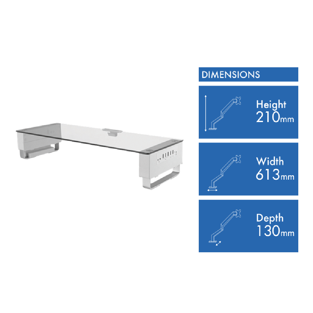 Ergovida ESS93 Monitor Riser with USB and Multimedia Ports