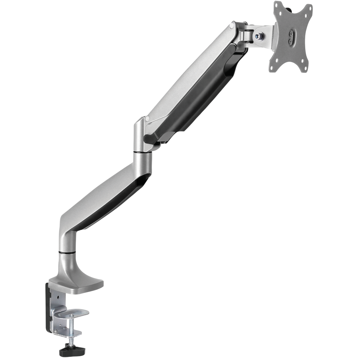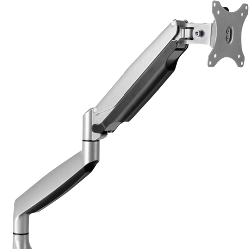 Achieve an ergonomic workspace with the Ergovida Gas Spring Single Monitor Arm. This silver monitor arm allows you to mount your 13-32 monitor and position it exactly where you need it for ideal viewing comfort. The 180 degree rotary VESA plate and flexible arm offer a full range of motion so you can tilt swivel and rotate your display just how you like it. Built-in cable clips keep cords organized and out of the way. This durable monitor stand conveniently clamps to your desk or mounts through a grommet hole for a clean integrated look. With a generous weight capacity of 1-6.5kg it effortlessly counterbalances your monitor so you can reposition it with just a light touch. The integrated strut gauge enables quick and easy weight adjustment for the perfect balance. Create your ideal workstation setup with the versatility and adjustability of the Ergovida Gas Spring Monitor Arm. The manufacturer's part number for this product is EMA10-C12.
