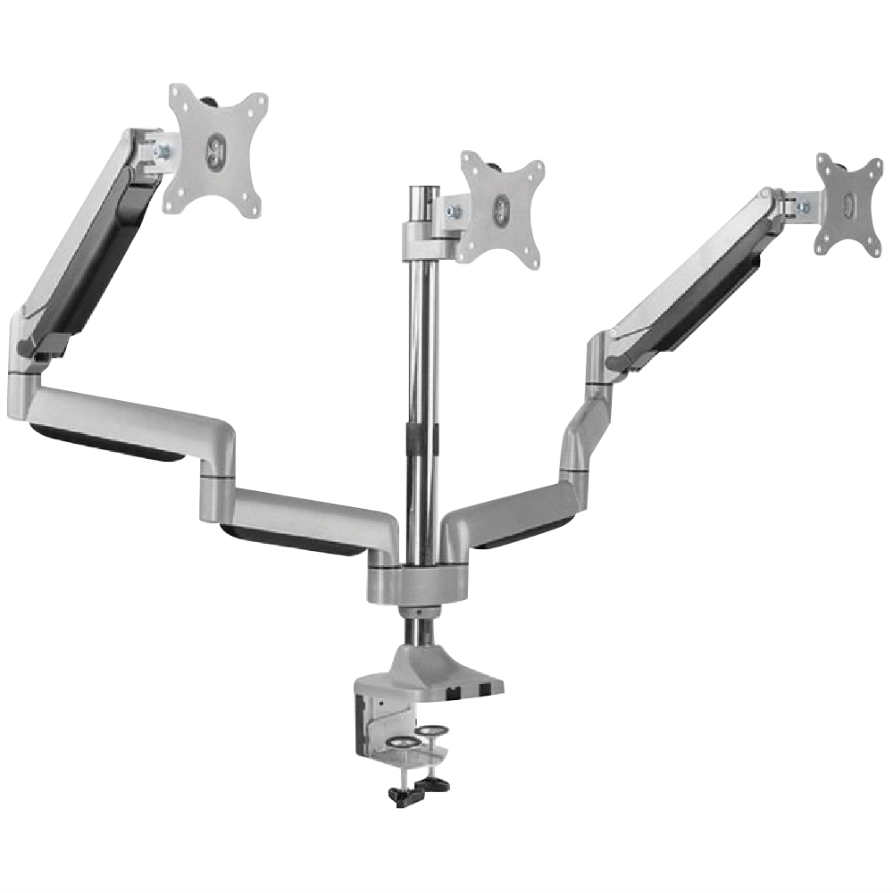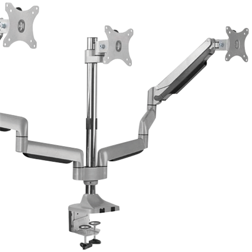 Enhance your productivity and comfort with the Ergovida Gas Spring Triple Monitor Arm with USB & Media Port. This sleek monitor arm frees up valuable desk space by mounting up to three monitors in an adjustable ergonomic setup. The durable steel construction provides stability while the gas spring arm smoothly positions your displays at the ideal height and angle. Reduce eye and neck strain by aligning screens at proper heights for work or entertainment. The built-in USB and audio ports keep cables organized and enable convenient access. With smooth adjustability and sturdy engineering this monitor arm creates an efficient clutter-free workstation to boost your focus. Experience the difference an ergonomic monitor setup can make with the space-saving versatility of the Ergovida Gas Spring Triple Monitor Arm. The manufacturer's part number for this product is EMA10-C36U. Check out this monitor arm today for an organized comfortable workspace.