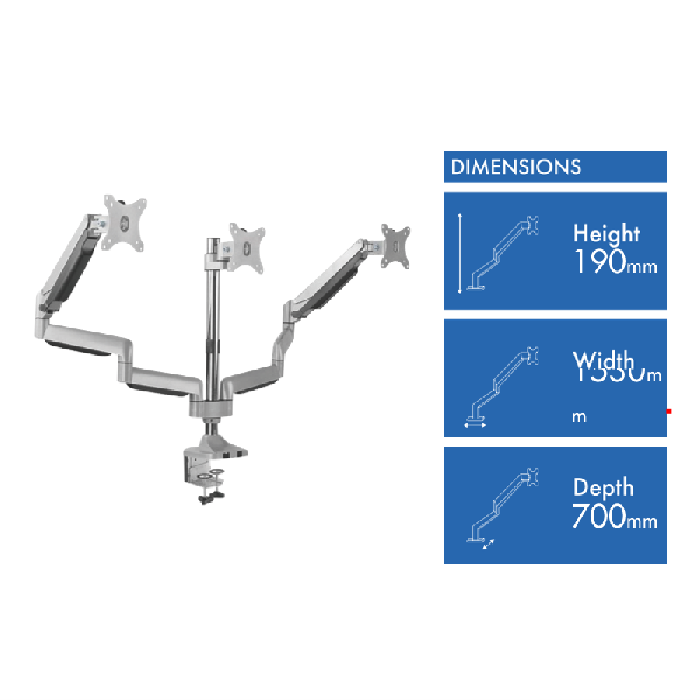 Ergovida Gas Spring Triple Monitor Arm with USB & Media Port