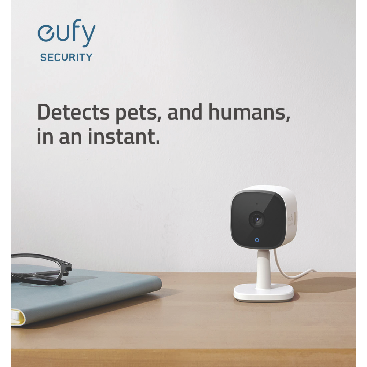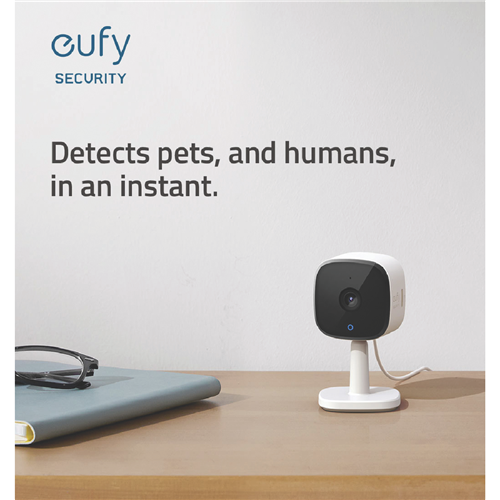 Capture every moment in crystal-clear 2K resolution with the eufy 2K Indoor Security Camera. This sleek white camera boasts a 4MP lens for ultra-sharp 1440p video so you can keep an eye on your home in stunning detail. With built-in AI it intelligently detects human motion versus pets while two-way audio allows you to both listen in and talk back. View live or recorded footage anytime from your smartphone with the eufy Security app. And with 128GB of on-board storage expandable by SD card you'll never miss a thing even without Wi-Fi. Night vision motion alerts and custom activity zones ensure 24/7 security. Mount it anywhere indoors for whole-home coverage. Google Assistant and Amazon Alexa integration lets you control your eufy camera using voice commands. Enjoy added peace of mind with the one year warranty. The manufacturer's part number for this product is T8400CW4. See everything that matters most in picture-perfect 2K quality with the eufy Indoor Cam.