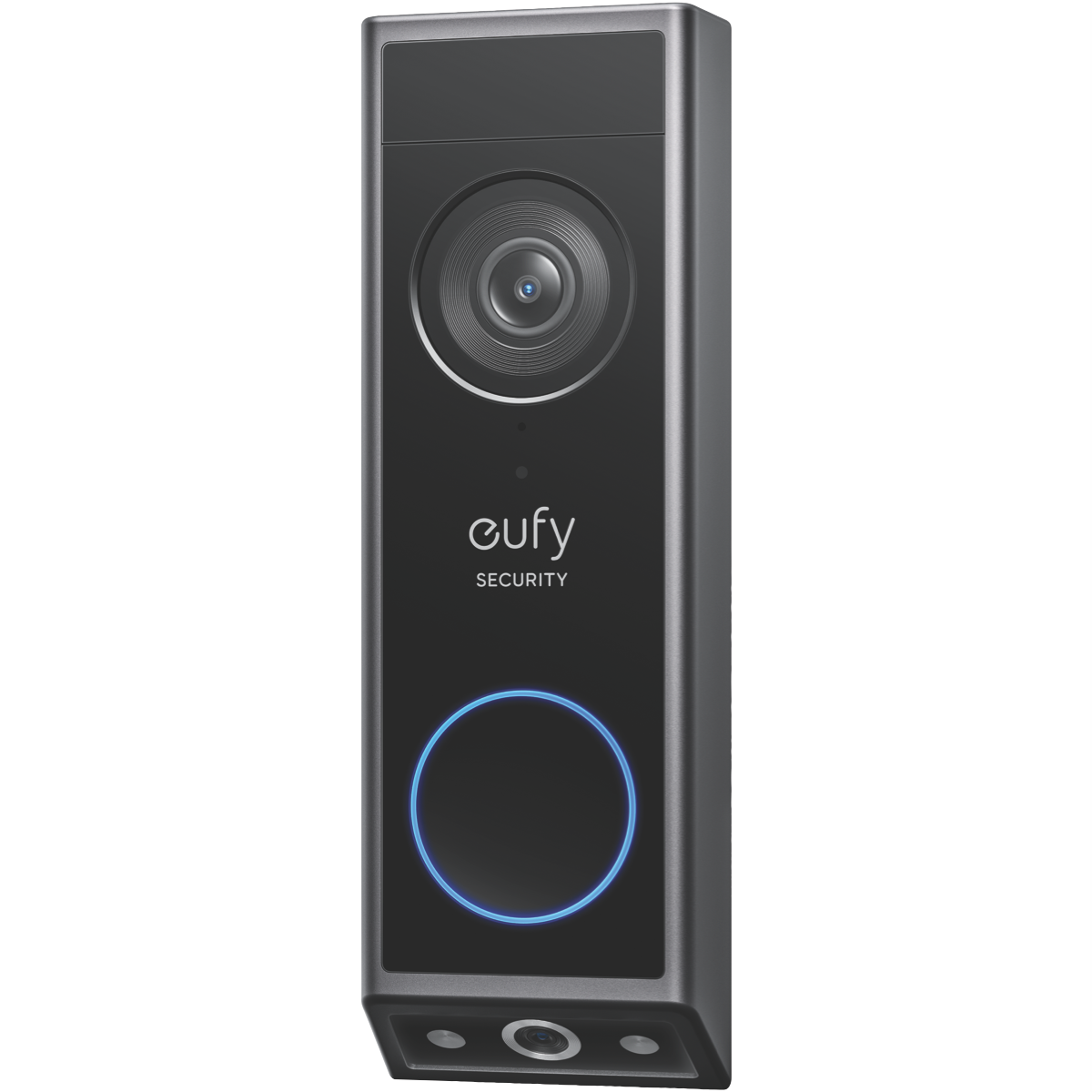 Welcome visitors in style with the sleek new eufy E340 Dualcam Solo Video Doorbell. This innovative black doorbell captures crisp 2K video with HDR powered by a high resolution 4-megapixel camera. See who's at your door any time with remote access viewing via your mobile phone. The built-in motion sensor alerts you to movement while two-way audio allows you to speak to visitors. With 8GB of storage and wired or battery power options the eufy E340 provides flexibility for any home. Mount it near your front door to keep watch day and night thanks to night vision capabilities. Control it all through the eufy Security app and even use voice commands with Google Assistant or Amazon Alexa. The eufy E340 Dualcam Solo Video Doorbell keeps your home safe stylish and connected. Rest assured with the included 1 year manufacturer's warranty. The manufacturer's part number for this product is T8214T11. Learn more about the eufy E340 and enhance your home's security today.