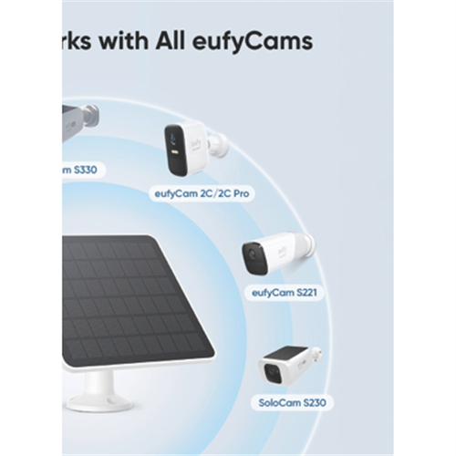 Looking to power up your security camera without the hassle of wires? This eufy Smart Solar Panel keeps your camera charged using the sun's energy. It's a handy 3W panel that connects to compatible eufy security cameras giving them a steady stream of power. No more worrying about battery life or finding an outlet nearby. The black design blends in nicely with your outdoor setup. It's a simple way to keep your camera running smoothly day and night. Plus it comes with a 1-year warranty for peace of mind. Just set it up point it at the sun and let it do its thing. The manufacturer part number is T8705C11.