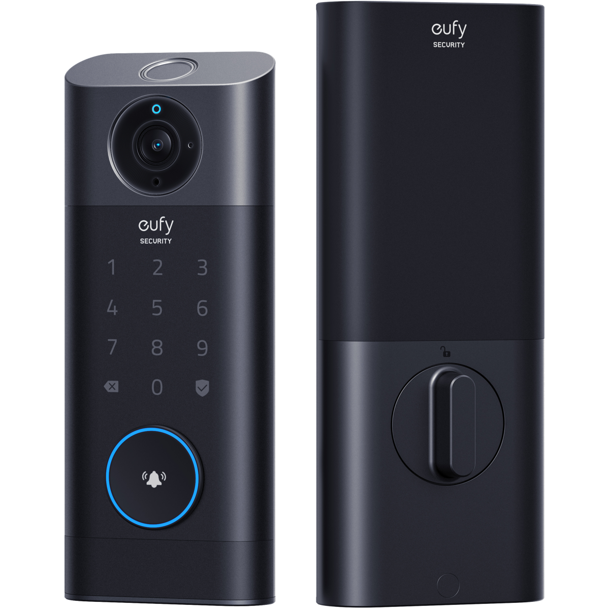 Unlock your front door from anywhere with the eufy Video Smart Door Lock. This innovative smart lock allows you to see who is at your door and unlock it remotely using the eufy security app no matter where you are. With its 2K HD video quality night vision fingerprint unlocking and motion detection this smart lock provides next-level security and convenience. Just speak to Google Assistant or Amazon Alexa to monitor your front door in real time see visitors and grant access with the sound of your voice. The built-in microphone enables two-way communication so you can greet guests or give instructions. This smart lock seamlessly integrates with other smart home devices and works with Google Assistant and Amazon Alexa. The black finish and compact design blends into any home exterior. With multiple unlocking methods real-time notifications and remote monitoring the eufy Video Smart Door Lock makes home access effortless. Rest assured your home is protected with this innovative smart lock solution. The manufacturer's part number for this product is E8530TY1. Take control of your front door today with the eufy Video Smart Door Lock.