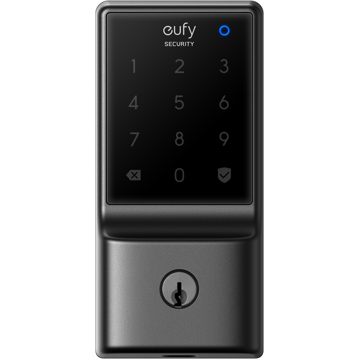 Step into the future of home security with the eufy WiFi Smart Door Lock. This innovative keyless entry system allows you to unlock your door with just a touch of a button on your smartphone. With its sleek black finish this smart lock blends seamlessly into your existing décor while packing some serious high-tech features under the hood. Instead of fumbling for keys just tap the eufy security app to instantly unlock the door for family and friends. Grant virtual keys with custom access schedules and view real-time activity thanks to the built-in camera. The illuminated keypad also lets you punch in your unique pin code for keyless entry when your phone isn't handy. Upgrade your home's security without the hassle of complex wiring or drilling. This smart lock installs in minutes over your existing deadbolt. It runs for up to 1 year per set of 4 AA batteries so you'll never be left out in the cold. Rest assured this lock is built to last with durable construction and a 1 year manufacturer's warranty.Bring the convenience of keyless entry into your home with the eufy WiFi Smart Door Lock. The manufacturer's part number for this product is T8502T11. Check out this innovative smart lock solution today.