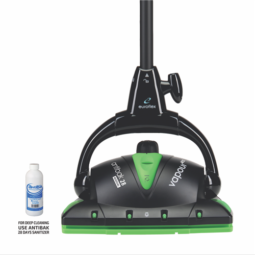 Clean your home with ease using the Euroflex Vapour M3S Sanitising Floor Steam Cleaner. This powerful 1200W steam mop comes equipped with a 600ml boiler capacity and 100ml antibak tank to eliminate 99.9% of bacteria as you clean. The integrated heating plate delivers extra heat to swiftly clean floors while the 7m cord allows you to tackle large areas without unplugging. Designed for use on hard floors like ceramic porcelain marble laminate and timber as well as carpets this steam cleaner is ideal for pet owners. The washable microfibre pads glide smoothly across floors to trap dirt while the antibak solution sanitises surfaces. With a 2 year warranty and weighing just 3.1kg the Euroflex Vapour M3S makes cleaning floors a breeze. The manufacturer's part number for this product is 3330282. Bring this steam mop home for a deeper clean.