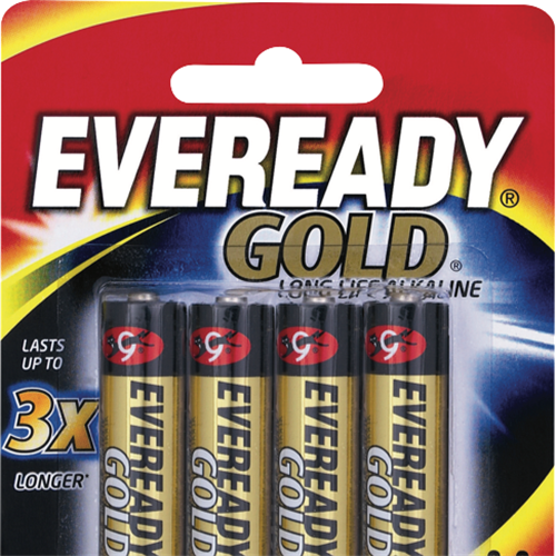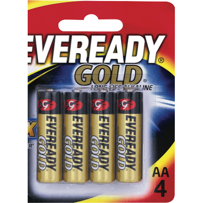 Power up your devices with long-lasting energy from the Eveready Gold AA Batteries 4 Pack. These high-performance AA batteries provide reliable power for everything from toys and remotes to flashlights and more. The 4-pack gives you a convenient multi-battery value option so you can stock up on power while saving money. Each AA battery is designed for optimal performance and longevity with leak-resistant construction that allows you to power your devices without worry. These versatile batteries feature the trusted Eveready Gold name delivering the portable power you expect in AA form. Whether you need to power game controllers clocks toys or any number of electronic gadgets reach for the lasting energy of Eveready Gold. These AA batteries bring convenient and dependable power in a 4-pack value size. The manufacturer's part number for this product is E000034400. Give your devices the portable power they need with the Eveready Gold AA Batteries 4 Pack.