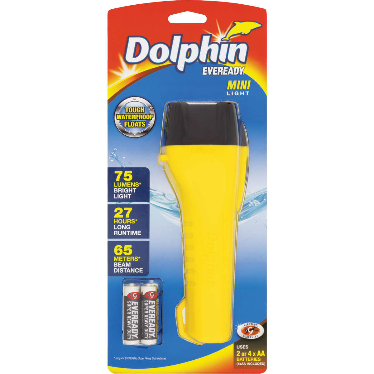 Brighten up your next camping trip or backyard barbecue with the compact and powerful Eveready Mini Dolphin Torch. This handy torch packs 200mm of illuminating power into a slim 60mm wide and 40mm deep body making it easy to pack in your bag or keep in your kitchen drawer for those impromptu midnight snacks. With vivid white LEDs the Mini Dolphin Torch lights your path finds lost keys in the dark and makes outdoor adventures after sunset a breeze. The focused beam reaches up to 20 metres to reveal hazards or highlight maps and trail markers. Campers hikers and homeowners alike trust the Mini Dolphin's durability relying on it outdoors and in power outages. Don't fumble in the dark for the fuse box or stumble on the trail grab an Eveready Mini Dolphin Torch and enjoy hands-free portable light whenever you need it. This versatile and reliable torch comes ready to brighten life's adventures. The manufacturer's part number for this product is E301640700. Check out the Eveready Mini Dolphin Torch for your lighting needs today.