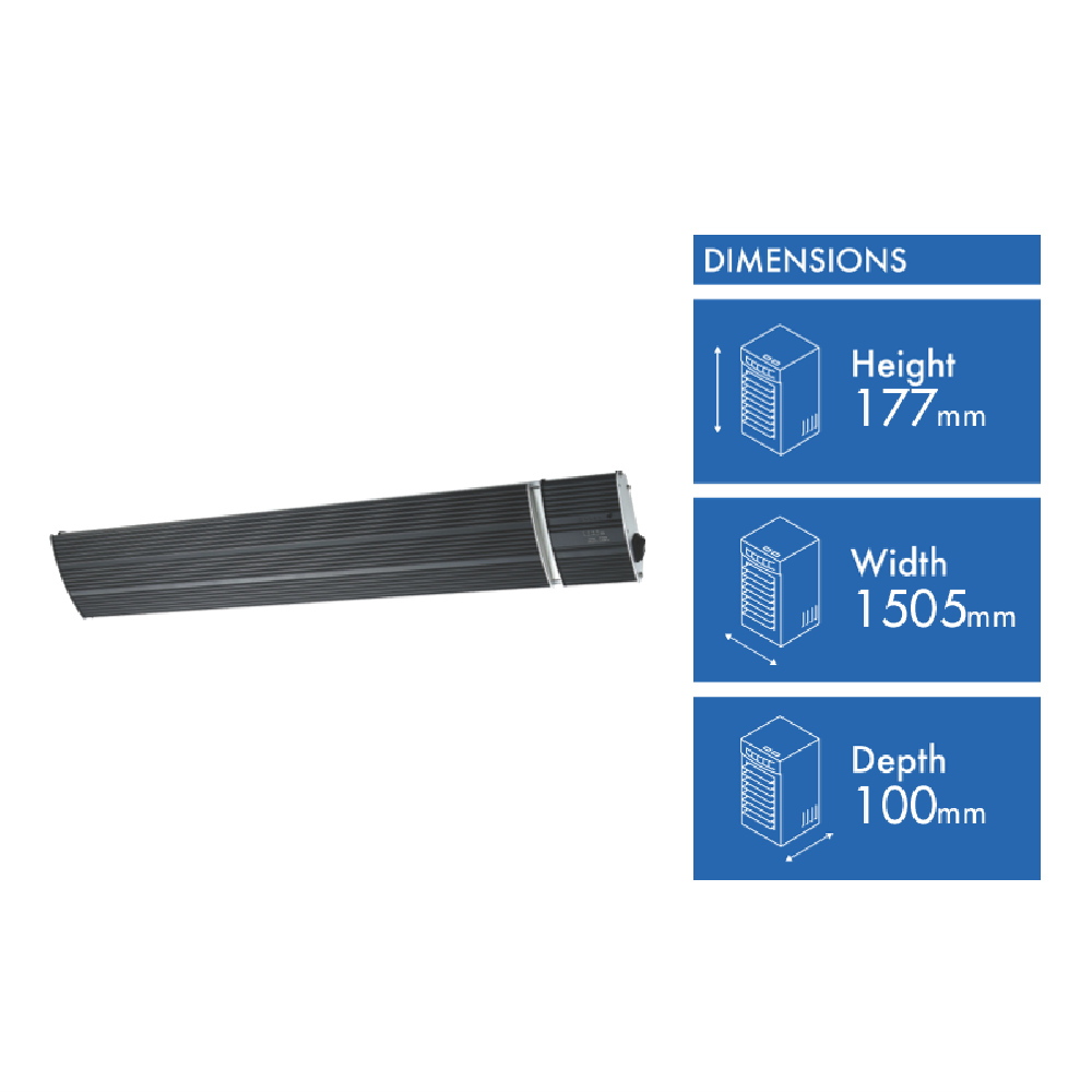 Bring the warmth and comfort of the indoors outside with the Excelair 2.4kW Radiant Outdoor Heater. This sleek portable electric patio heater provides powerful heat for your outdoor entertaining areas. With three heat settings and a convenient remote control you can easily adjust the temperature to your liking. The ceramic infrared heating plate and corrosion-resistant aluminium allow for quick even heating while standing up to the elements. And thanks to the IP65 waterproof rating you can use this outdoor heater in light rain. The anodised casing looks great on your patio or deck while also preventing rust. With its adjustable ceiling angle you can direct heat where you need it most. Enjoy up to 2.4kW of heating and extend your outdoor living well into the evening. The Excelair Radiant Outdoor Heater comes with a 2 year manufacturer's warranty for peace of mind. The manufacturer's part number for this product is EOHA24R. Take your outdoor gatherings to the next level with powerful adjustable electric heating from Excelair.