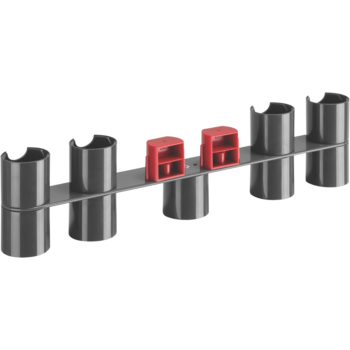 The Ezymount 9 Way Accessory Extension for Dysons seamlessly extends the reach of your Dyson vacuum keeping your home spotless with ease. Compatible with all Dyson vacuums this attachment organizer neatly stores nine Dyson tools in one compact H84mm x W362mm x D42mm unit that affixes to your wall for quick grab-and-go convenience. With a generous 10 year manufacturer's warranty you can rely on the Ezymount's durable construction to hold your accessories securely in place. Tidy up your tool storage and maximize your cleaning potential with the Ezymount 9 Way Accessory Extension for Dysons. Look for part number ED9A.
