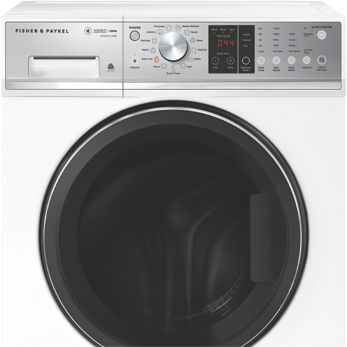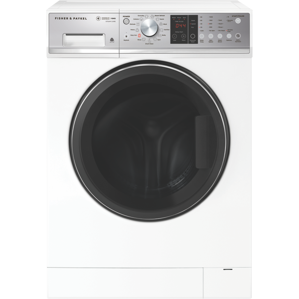 Revolutionize your laundry with the Fisher & Paykel 10kg Front Load Washer. This powerful front loader packs a 10kg load capacity and 1400rpm max spin speed for fast efficient washing. With a 4.5 star WELS water rating and 4.5 star energy rating you can save water and energy while keeping clothes looking their best. Thirteen versatile programs like Bulky Delicate Eco and Steam Refresh cater to every fabric and load size. Quiet yet durable this washer features load sensing auto balancing and a two year warranty so you can enjoy whisper quiet performance for years to come. Additional features like Wi-Fi connectivity Add A Garment and Customize Cycle provide advanced control over every wash. Harnessing the gentle power of steam the Steam Refresh cycle freshens garments without washing. From bulky bedding to delicate silks the Fisher & Paykel 10kg Front Load Washer delivers a thorough clean while maximizing efficiency. With innovative features tailored to suit any laundry load this front loading washing machine streamlines chore time. The manufacturer's part number for this product is WH1060P4. Learn more about how this washer's customized cycles and energy saving performance can benefit your home.