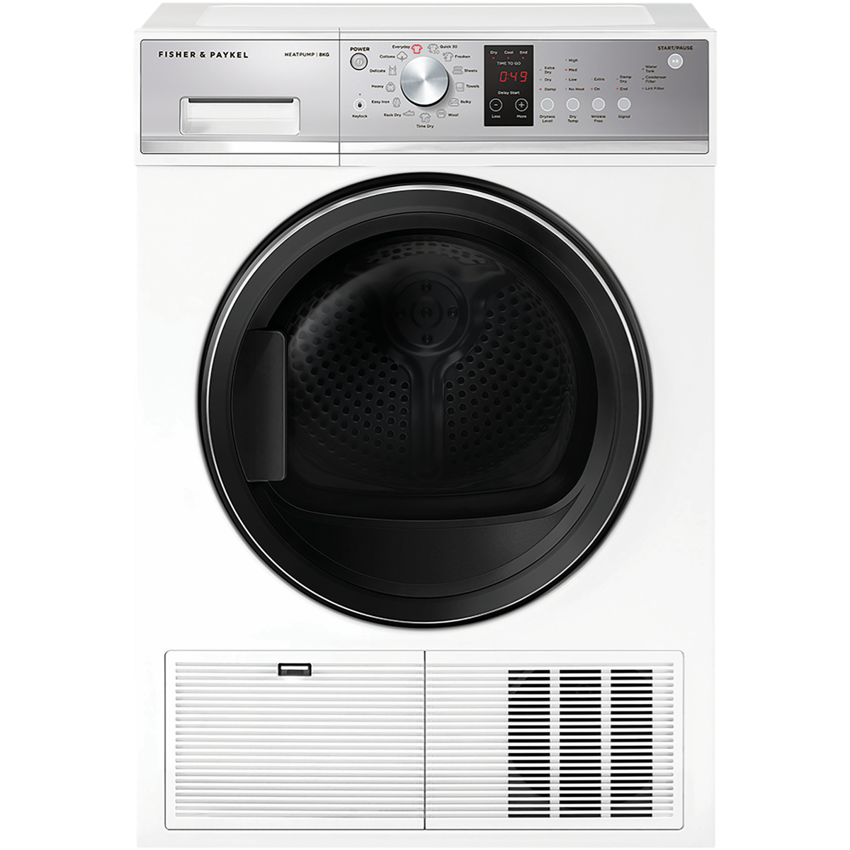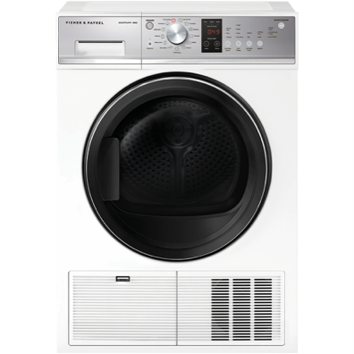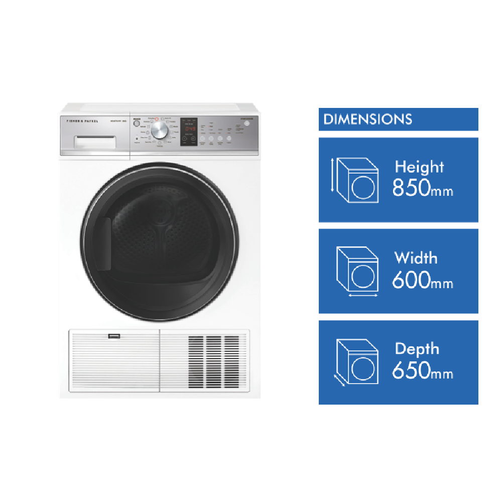 This Fisher & Paykel 8kg Heat Pump Dryer is the perfect addition to your laundry. With its 7 Star energy rating and 13 drying programs including Bulky Cottons Delicate Easy Iron and Wool this dryer adapts to all your clothing needs. The stainless steel drum gently dries up to 8kg of laundry while Auto-sensing prevents over-drying. Additional features like the drying rack multiple temperature settings and dryness levels give you maximum control over each cycle. At 850mm high 600mm wide and 650mm deep it fits most laundry spaces. The white finish blends seamlessly into your existing decor. With a 2 year manufacturer's warranty you can trust the durability of this dryer. The manufacturer's part number for this product is DH8060P3. See how this Fisher & Paykel clothes dryer can make laundry day easier.