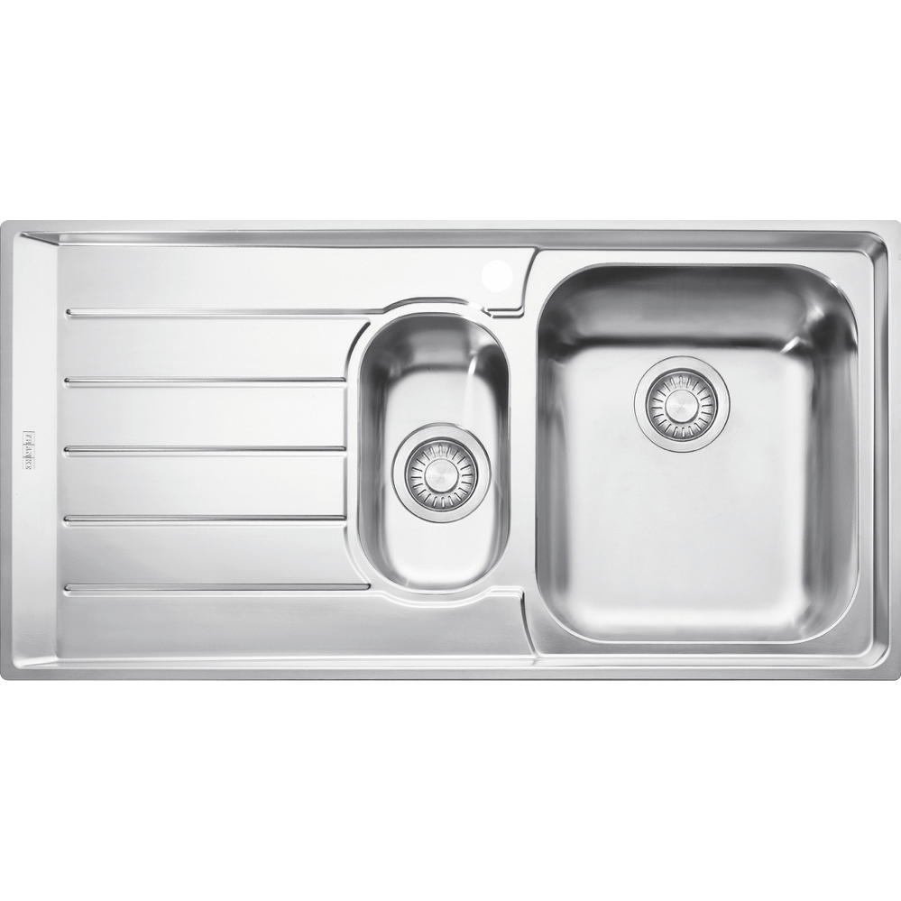 Make doing the dishes an effortless experience with the Franke Neptune 1 1/4 bowl left hand drainer sink. This top mount stainless steel sink features a sleek modern design to elevate your kitchen. With a large 28L main bowl and handy 6L second bowl you'll have ample room for washing dishes preparing food and more. The main bowl measures a spacious 420mm high by 360mm wide by 190mm deep while the smaller second bowl comes in at 302mm high by 165mm wide by 130mm deep. The left hand drainer configuration provides an ergonomic solution for rinsing and drying. At 1000mm wide this double bowl sink can handle even your largest cookware with ease. The satin finish and stainless steel construction ensure durability and easy cleaning for years to come. Sound deadening pads minimize noise when in use. Franke includes their ST817 strainer tray and CB900 chopping board to maximize functionality. Semi integrated waste design delivers convenience. This sink's dimensions of 510mm high by 1000mm wide make it a versatile choice for many kitchens. With a 50 year manufacturer's warranty you can install this sink with confidence. The manufacturer's part number for this product is NEX651LHD. Bring convenience and style to your kitchen with the Franke Neptune double bowl sink.