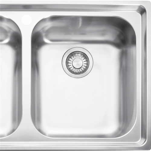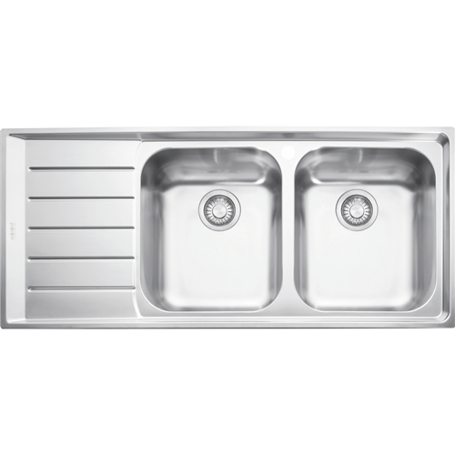 • Stainless steel double bowl, left hand drainer, 26 Litre and 28 Litre capacity