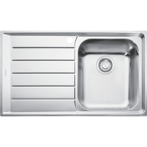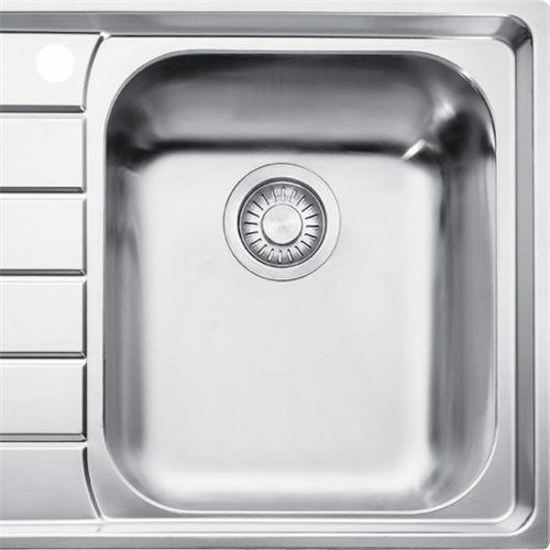 Bring a touch of modern elegance to your kitchen with the Franke Neptune single bowl left hand drainer stainless steel sink. This top mount sink offers a generous 27L capacity bowl that measures 420mm high by 360mm wide by 190mm deep perfect for tackling piles of dishes. The durable and easy-to-clean stainless steel construction ensures this sink will be a staple in your home for years to come while the semi integrated waste outlet integrated sealing strip and sound deadening pads minimize noise and help keep water contained. With its sleek single bowl design this sink provides ample room for washing up while fitting in with both modern and more traditional kitchen decors. Installation is a breeze with the 844 x 494mm cut-out size and 600mm minimum cabinet size. Your search for the ideal stainless steel kitchen sink ends here. This Franke sink comes complete with 1 tap hole and Franke's exceptional 50 year warranty for long-lasting peace of mind. The manufacturer's part number for this product is NEX611LHD.