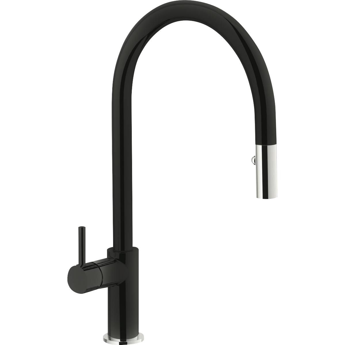 The Franke Verona Onyx Gooseneck Pullout Tap provides the ultimate in style and convenience for your kitchen. This sleek black tap features a high gooseneck spout that swivels and pulls out making it easy to fill pots or wash large items in the sink. The 35mm diameter ceramic cartridge and 5 star WELS water rating ensure efficient water flow and conservation. With a height of 125mm and 207mm reach this tap can fit over most sinks. The onboard veggie sprayer allows you to rinse fruits and vegetables with a powerful jet spray. Bring modern luxury to your kitchen with the Franke Verona Onyx Gooseneck Pullout Tap. The manufacturer's part number for this product is TA7311B. Check out this stylish and functional tap today.