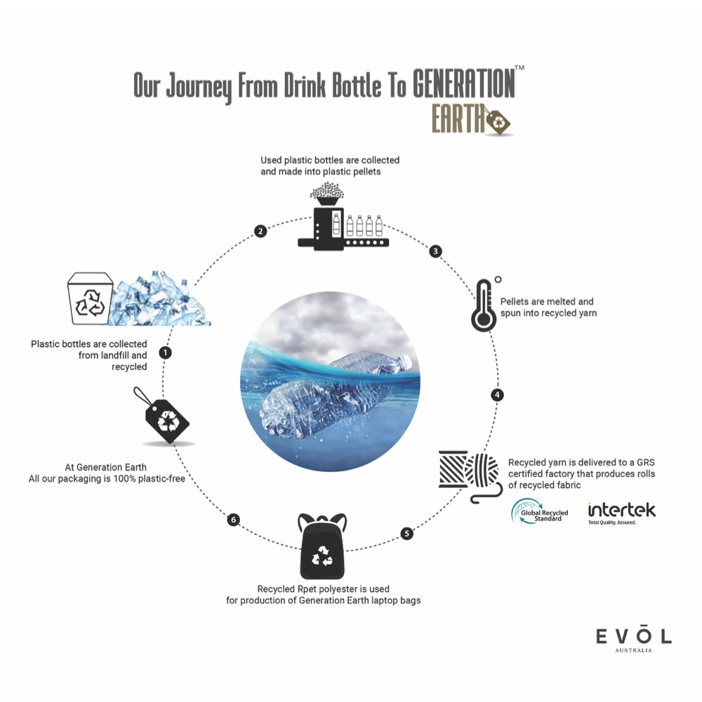 The Generation Earth 15.6 Recycled Laptop Briefcase in stylish black offers a sustainable solution for carrying your tech in style. Crafted from durable 900D recycled polyester with vegan leather accents this eco-friendly laptop bag provides a secure home for devices up to 15.6 inches. The interior features a padded laptop sleeve to protect your computer from bumps and scratches. Spacious interior and exterior pockets allow you to organize cables chargers notebooks and other accessories while the ergonomic shoulder strap ensures comfortable carrying. With its sleek professional design this recycled laptop briefcase is perfect for commuters and mobile professionals who want to make an eco-conscious statement. The manufacturer's part number for this product is EVR090. For a sustainable bag that protects your tech while reducing waste choose the Generation Earth Recycled Laptop Briefcase.
