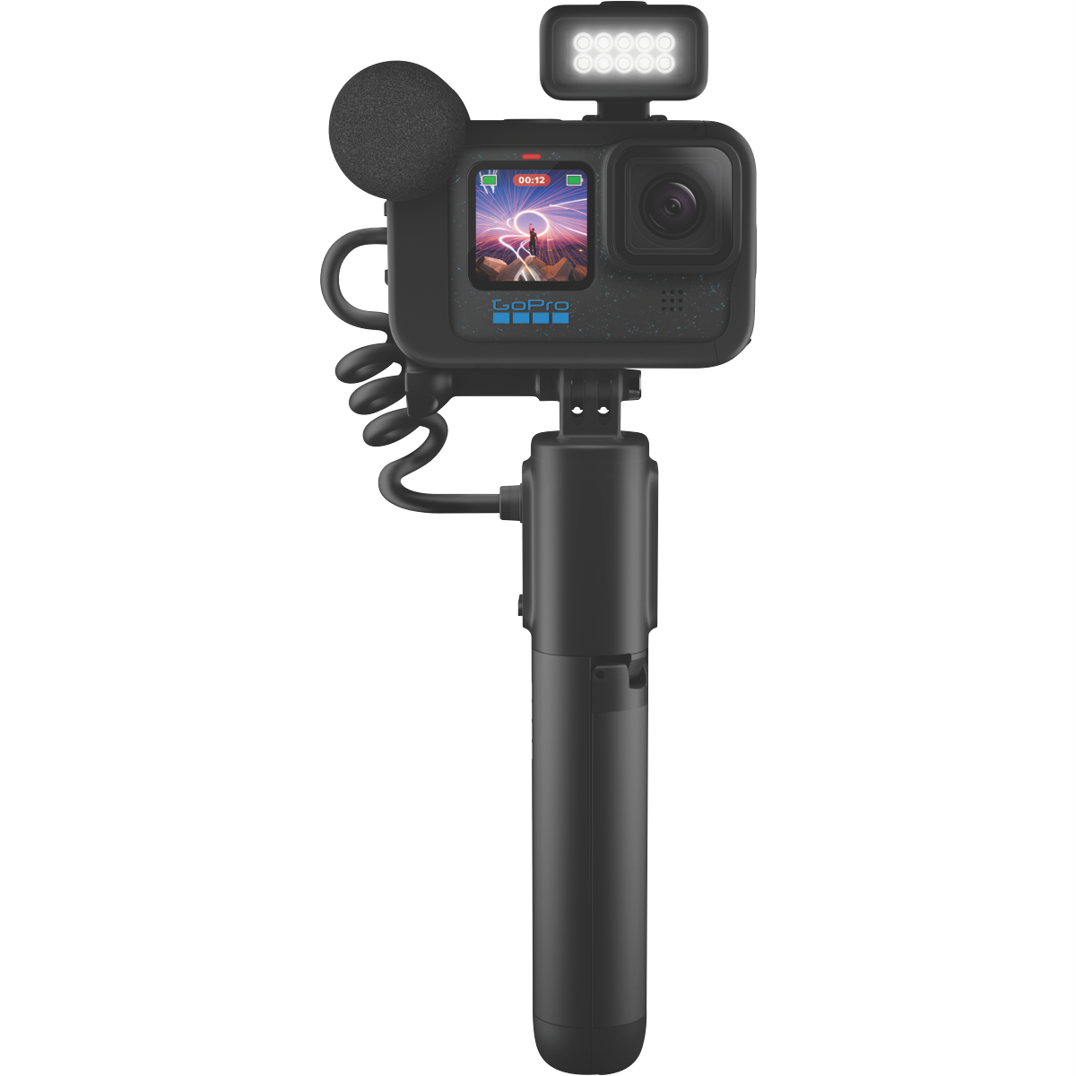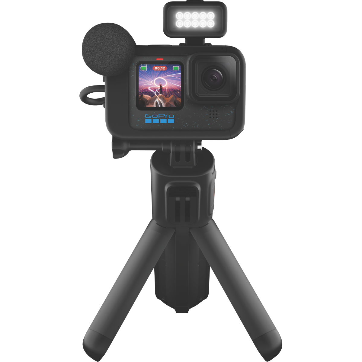 Capture life's adventures in stunning detail with the GoPro Hero12 Black Creator Edition action camera. This powerful 27MP camera lets you shoot 5.3K60 4K120 and 2.7K240 video with its 2x zoom delivering ultra-high resolution footage perfect for professional content creation. The Enduro battery enables all-day shooting so you'll never miss a moment of the action. The Hero12 Black is waterproof without a housing features built-in WiFi and Bluetooth for easy sharing and includes a 1-year warranty. With sophisticated pro-level tools like horizon leveling HyperSmooth video stabilization and HindSight this rugged GoPro helps you create epic videos. The intuitive touch display voice control and live streaming make capturing and sharing your adventures incredibly simple. Vivid photos super slow motion night lapse and stunning time lapse photography are all possible with the Hero12 Black. For aspiring creators looking to take their skills to the next level the Hero12 Black Creator Edition is the ultimate action camera. Capture your life in an entirely new way with the unmatched quality of GoPro. The manufacturer's part number for this product is CHDFB-121-AS.