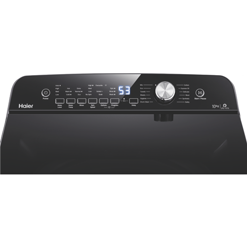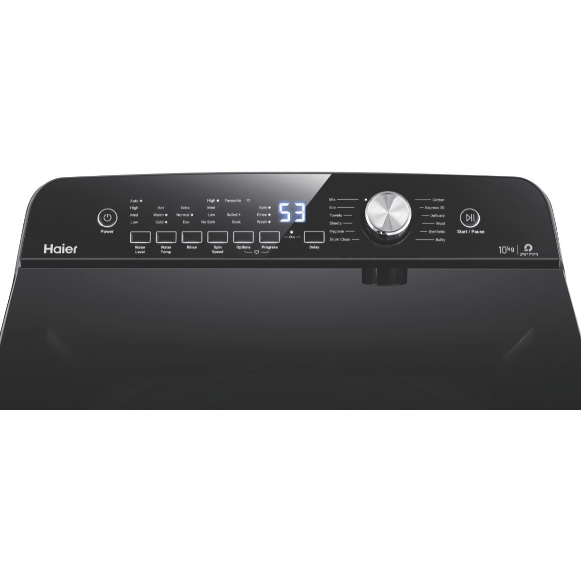 Step into effortless laundry days with the Haier 10kg Top Load Washer. This spacious top loader takes the chore out of washing thanks to its generous 10kg capacity perfect for tackling multiple loads in one go. With 12 programs to choose from including Bulky Cottons Eco and Express 30 you'll breeze through washing any fabric type. Set it and forget it with customizable options like 4 water levels 3 temperatures and 4 spin speeds to get your laundry just the way you like. Cut back on water and power bills with the 4.5 star energy rating and 4 star WELS water rating. The intuitive control panel makes operation a breeze while additional features like Auto Load Sensing Delay Start and Favorite Mode save you time and hassle. Soak heavily soiled items before washing or use the Soiled Plus setting to give them an extra clean boost. The durable 720rpm maximum spin speed means less drying time plus the soft close lid and front levelling feet lend a quality feel. Bring easy eco-friendly laundry home with the Haier 10kg Top Loader's spacious drum customizable wash options and energy efficient design. With a 2 year warranty for peace of mind discover how quick and simple washing can be. The manufacturer's part number for this product is HWT10ANB1.