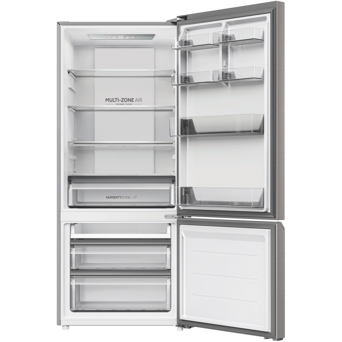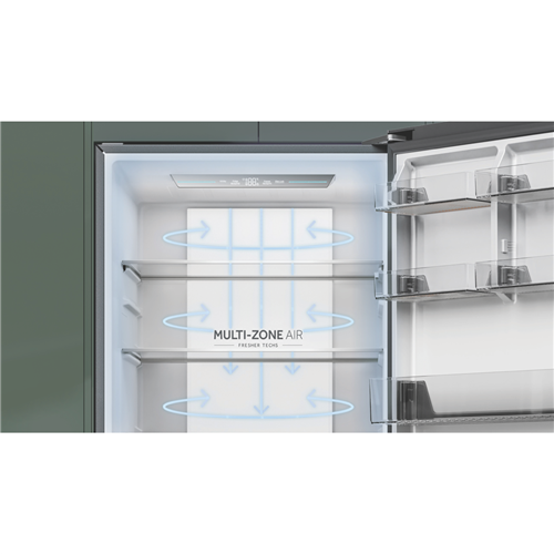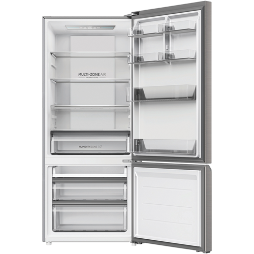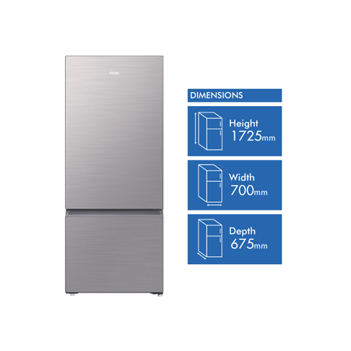 A spacious bottom mount fridge with generous 433L capacity and clever cooling features this silver Haier refrigerator offers flexible storage for the family home. Boasting a generous 321L fridge compartment and 112L freezer the HRF420BS provides ample chilled and frozen storage. Its Multi-Zone Air system maintains even cooling while the Super Freeze function lets you rapidly freeze new items. With a right hand door that can be reversed fingerprint resistant finish and separate temperature controls for fridge and freezer this refrigerator offers convenient customisable storage. Rated 5.5 stars for energy efficiency the HRF420BS includes a Humidity Zone to keep fruit and veg fresher for longer. Measuring 700mm W x 1725mm H x 675mm D this Haier bottom mount refrigerator provides flexible family storage with its generous capacity multi-temperature zones and energy saving credentials. The manufacturer's part number for this product is HRF420BS. Discover how the HRF420BS can enhance your household cooling and food storage needs today.