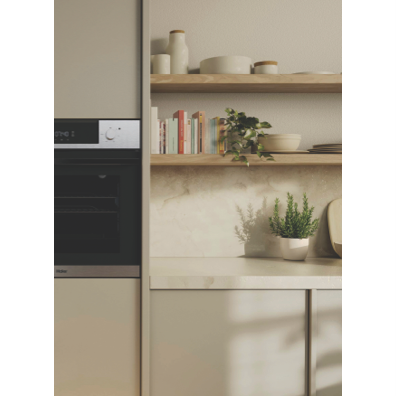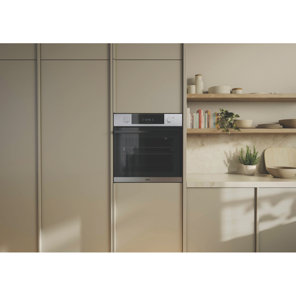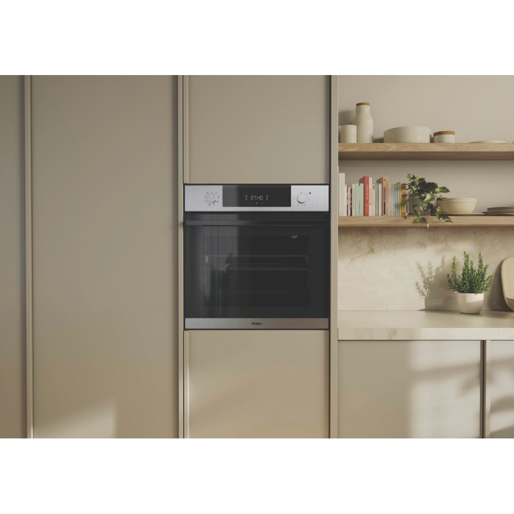 This 60cm built-in oven from the 500 Series brings versatility to your kitchen with seven cooking functions including air fry capability. The 70-litre capacity gives you plenty of space for family meals while the steam assist technology enhances your cooking with two special functions - Bake+Steam and Vegetables+Steam. Your baking will benefit from specialized settings like Master Bake Pastry Plus and Pizza Plus creating perfect results every time. The sleek stainless steel finish complements any kitchen design and it comes complete with an air fry tray baking tray telescopic side runners and two wire shelves for all your cooking needs. Backed by a 2-year warranty. Model HWO60S7EX5.